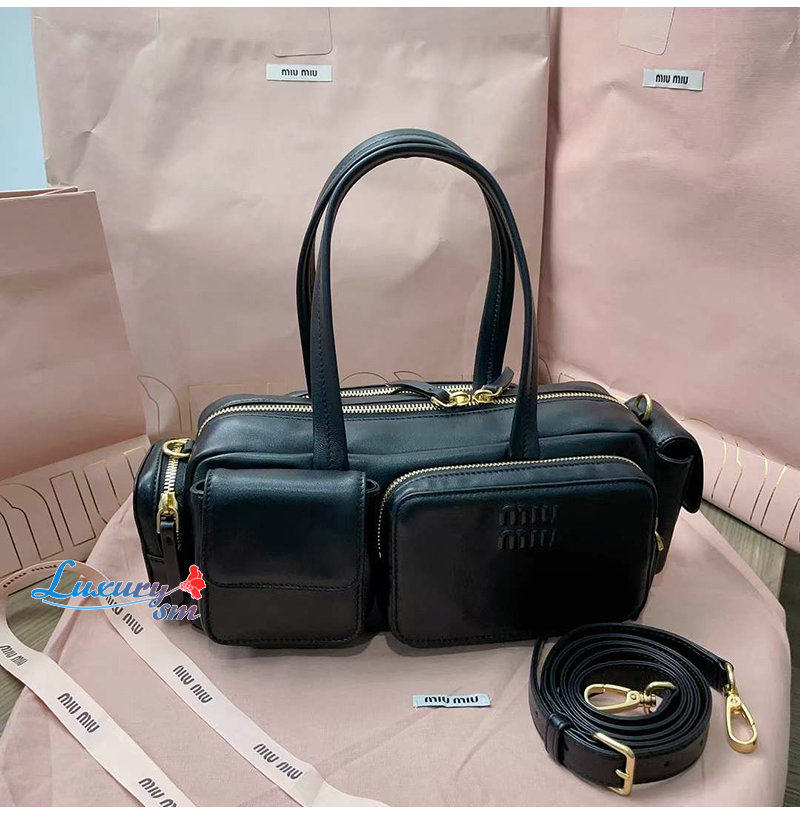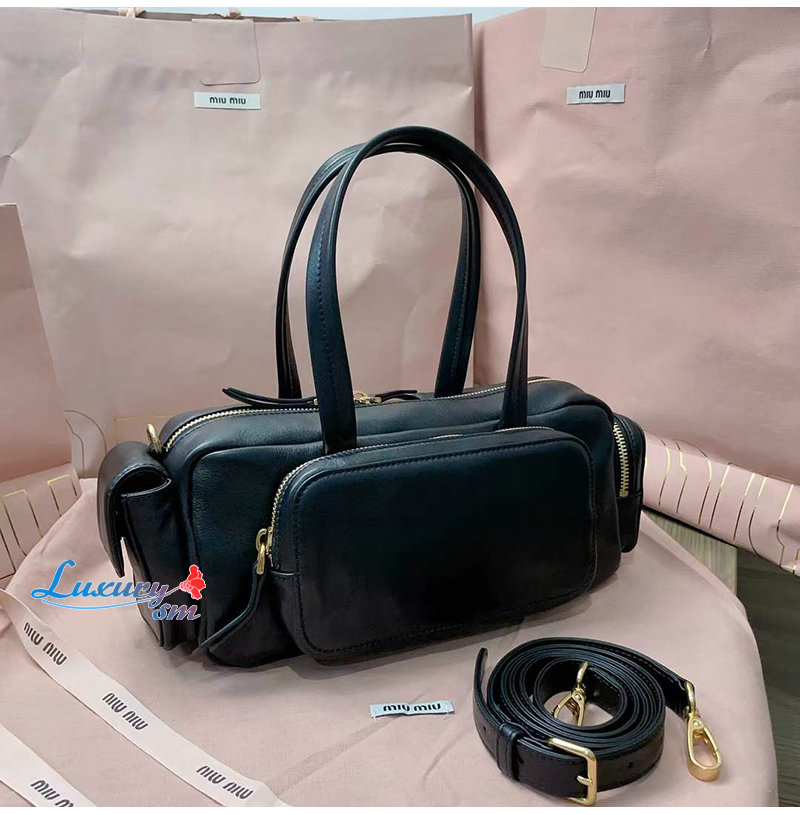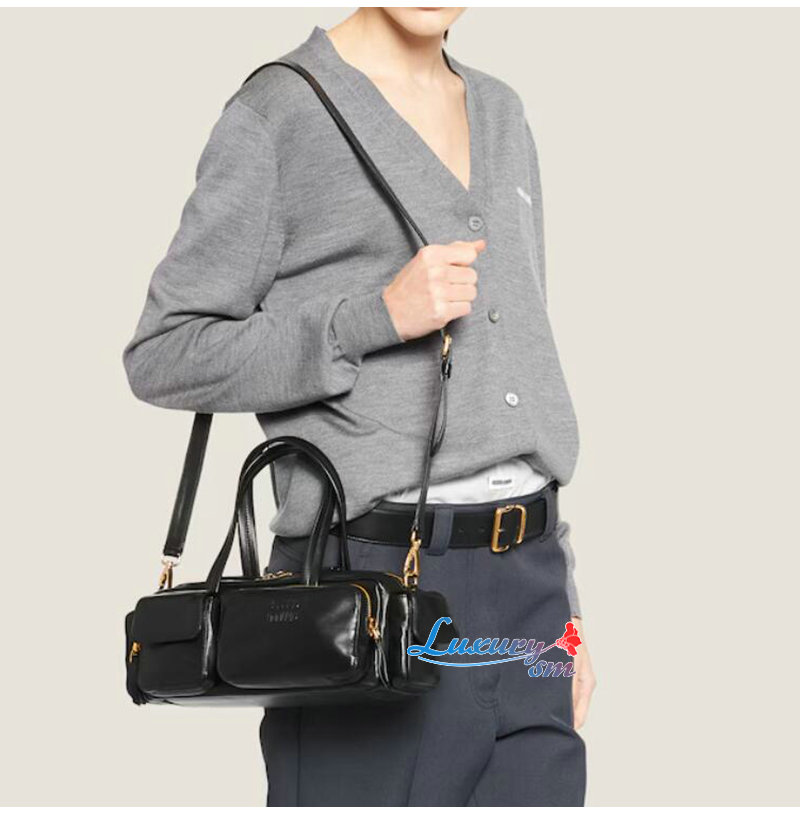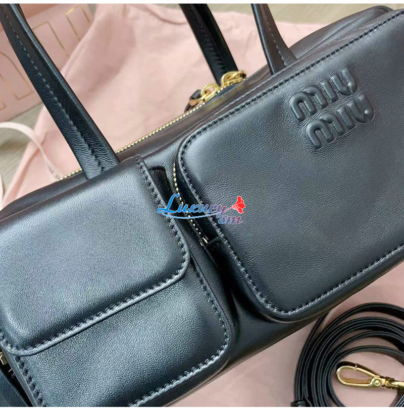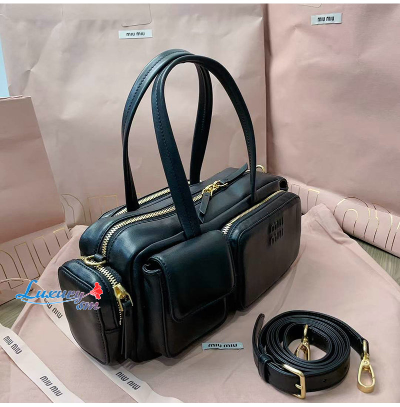 [스페셜오더]MIUMIU-5BB150 미우미우 블랙 나파 가죽 포켓 탑 핸들 백