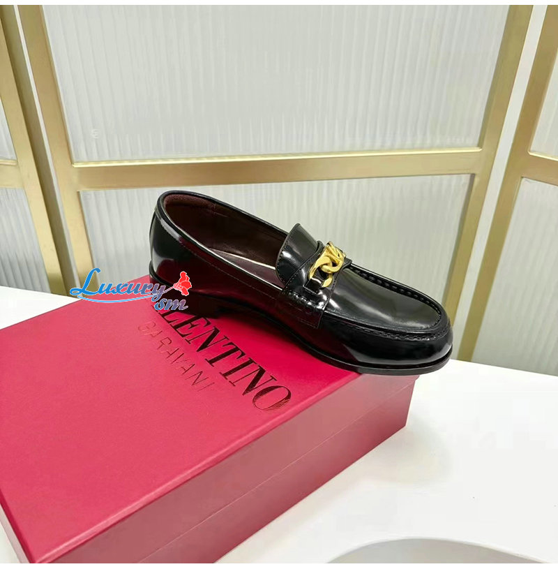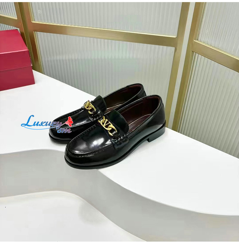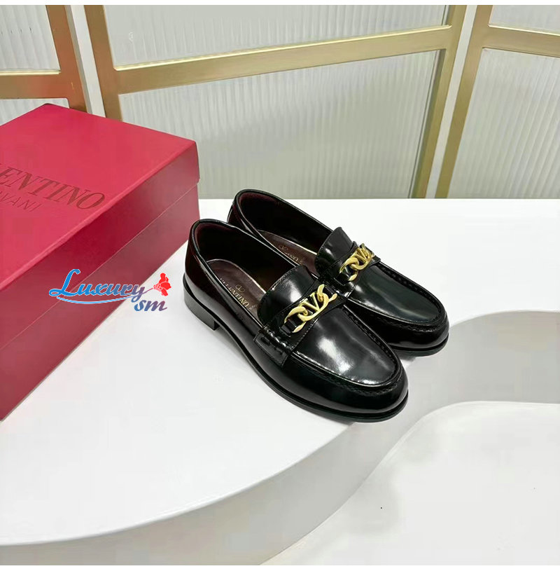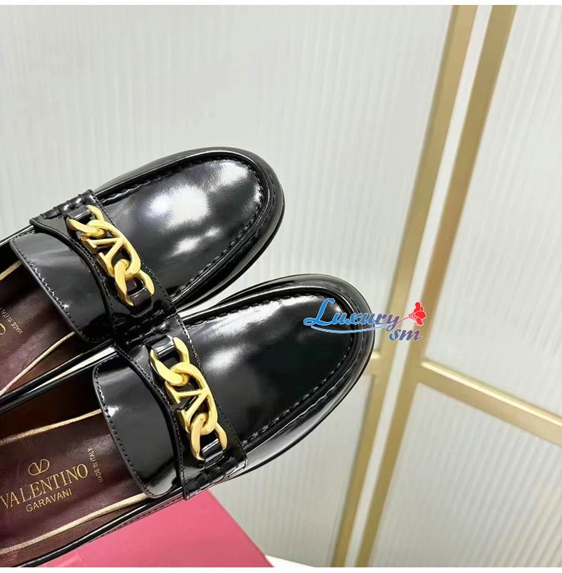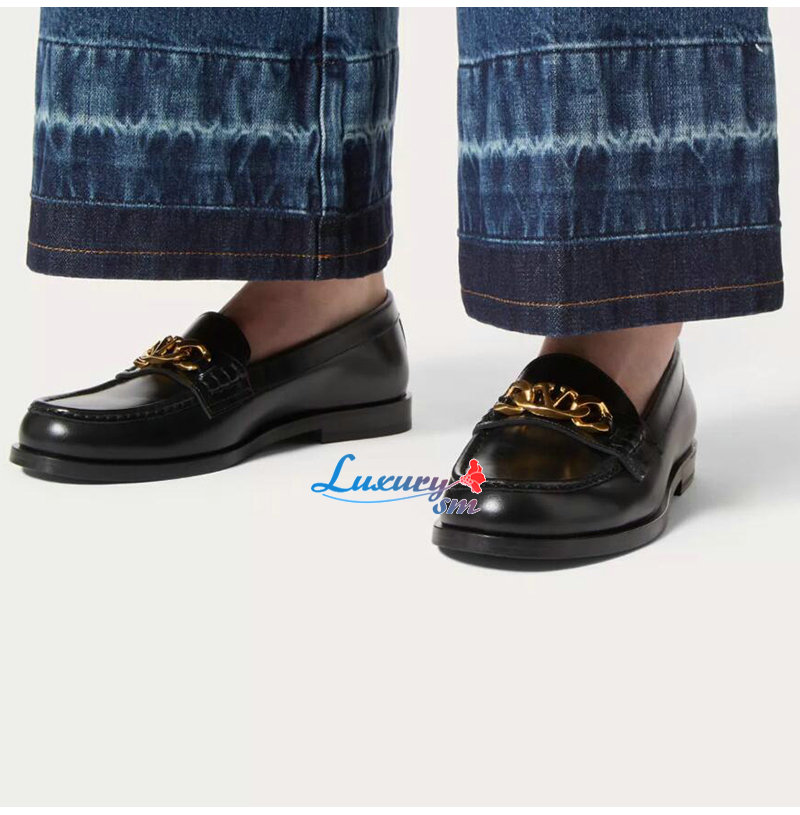 VALENTINO-1W2S0E 발렌티노 블랙 브이로고 체인 송아지 가죽 로퍼 여성용