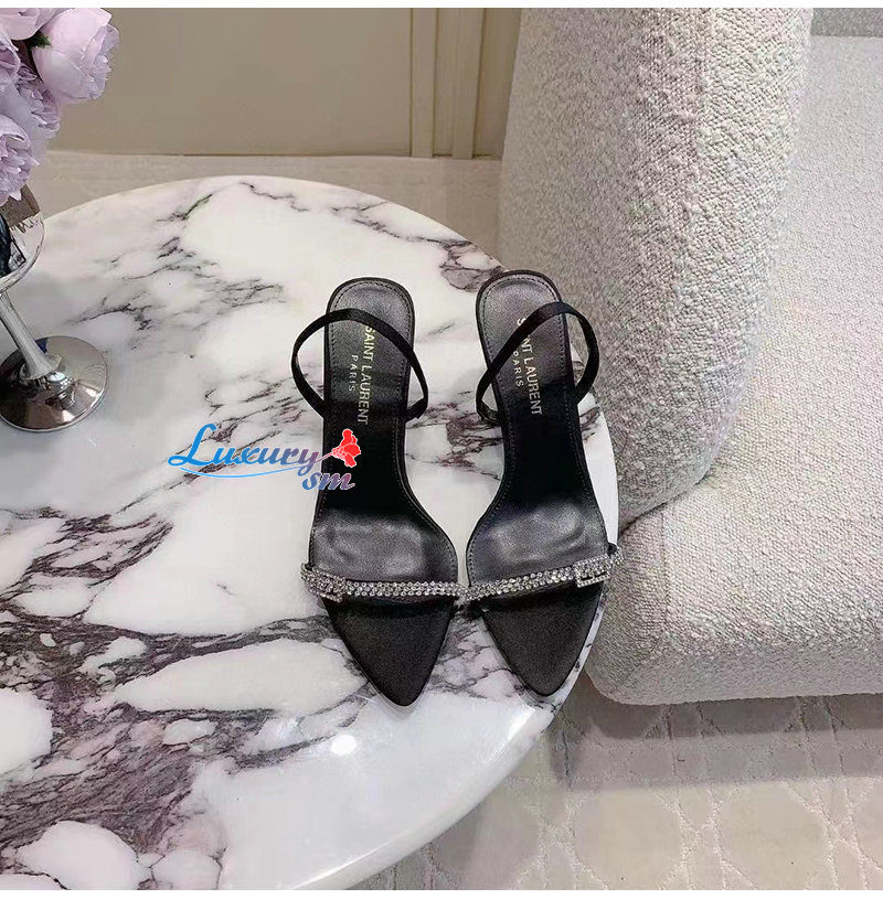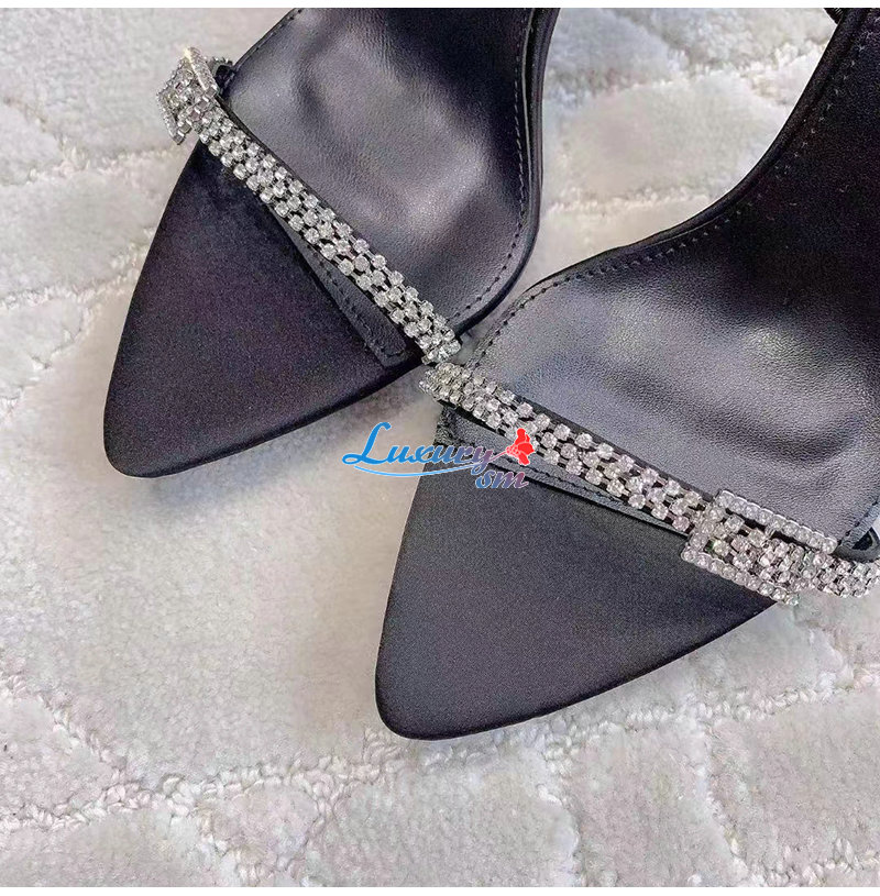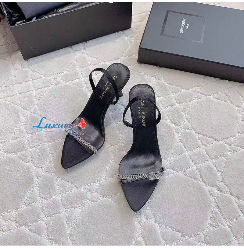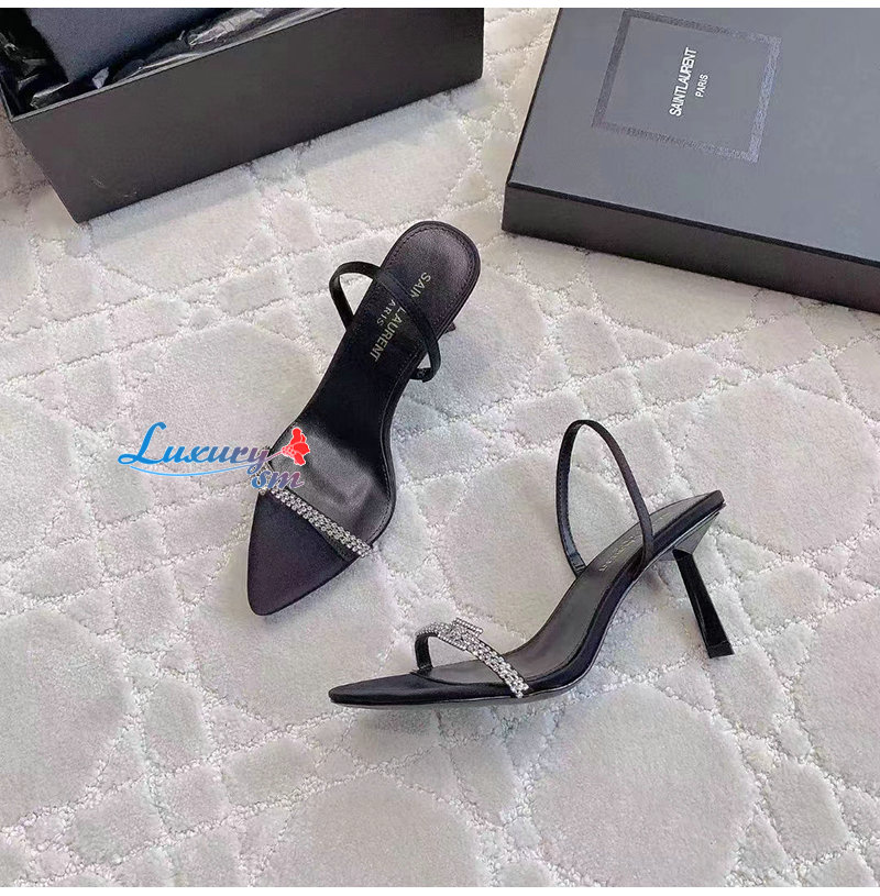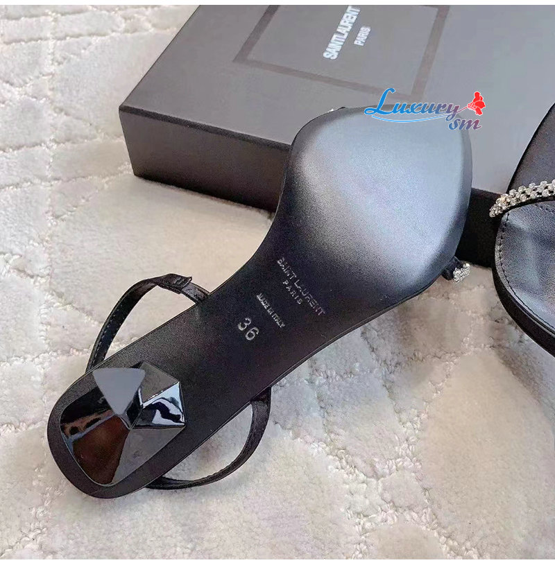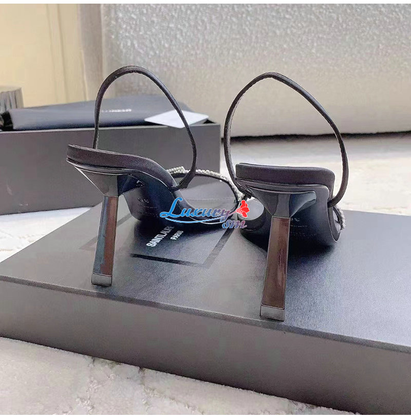 SAINT LAURENT-775158 생 로랑 블랙 새틴 크레이프 RENDEZ-VOUS 샌들