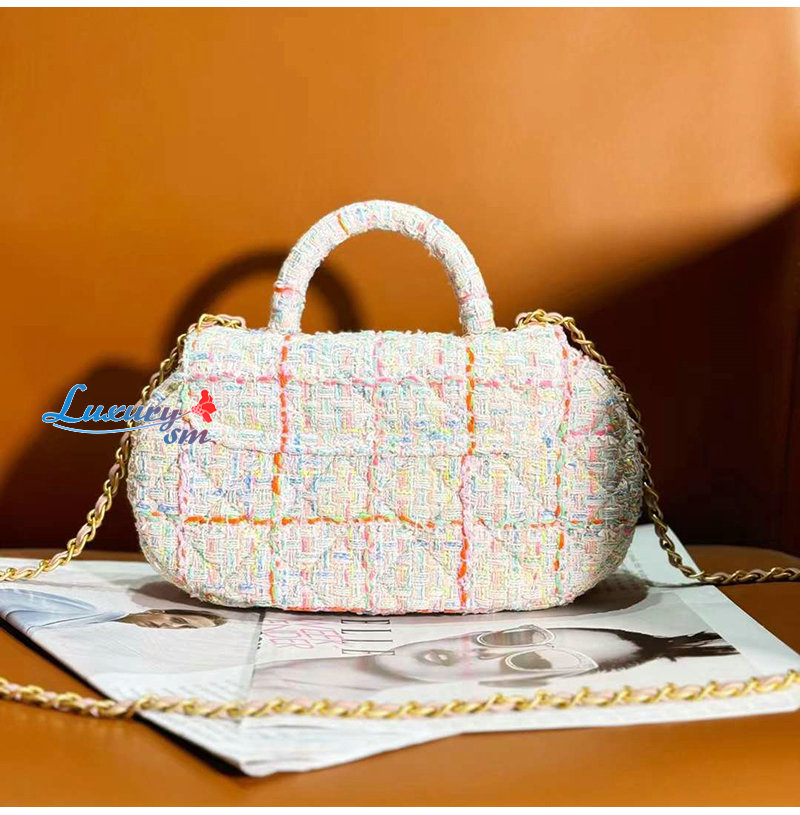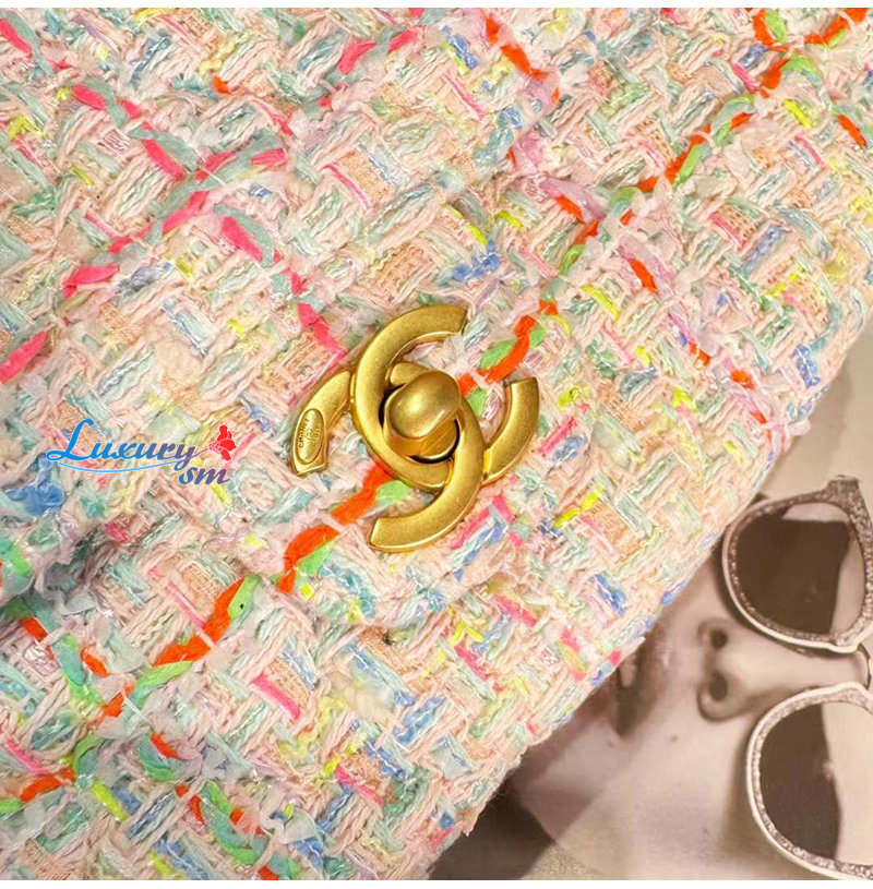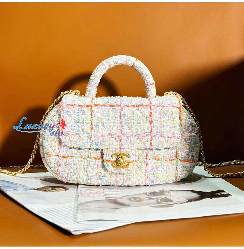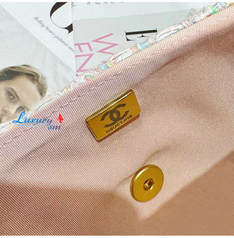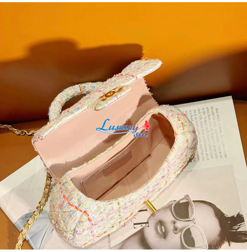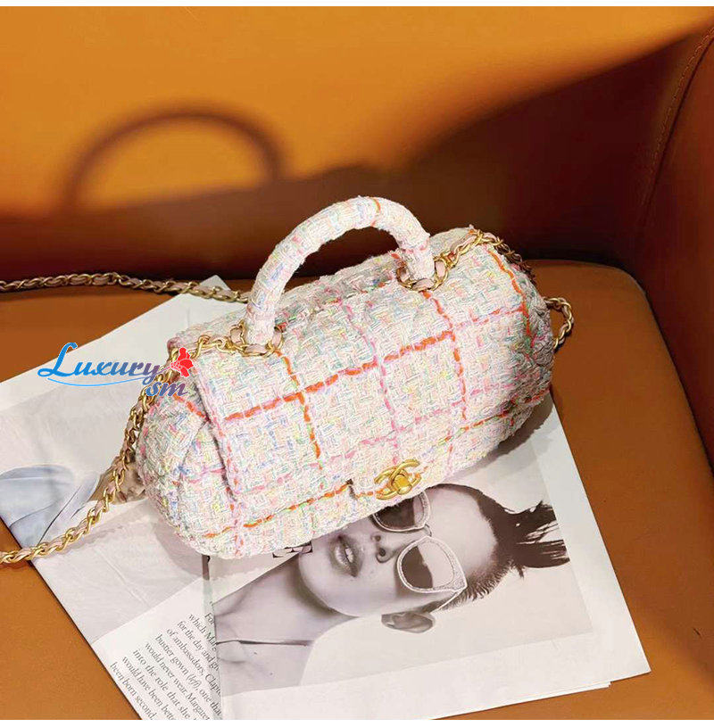 CHANEL-AS4569 샤넬 핑크 트위드 탑 핸들 백