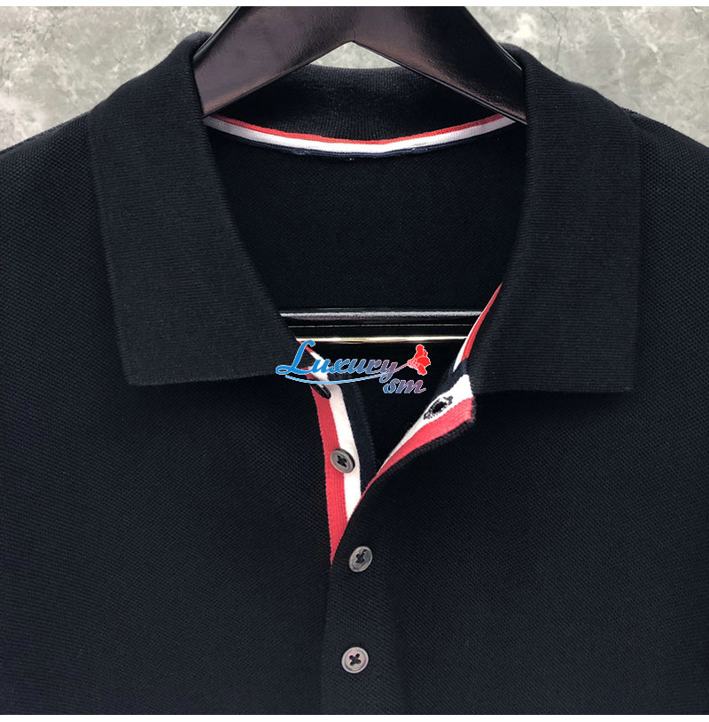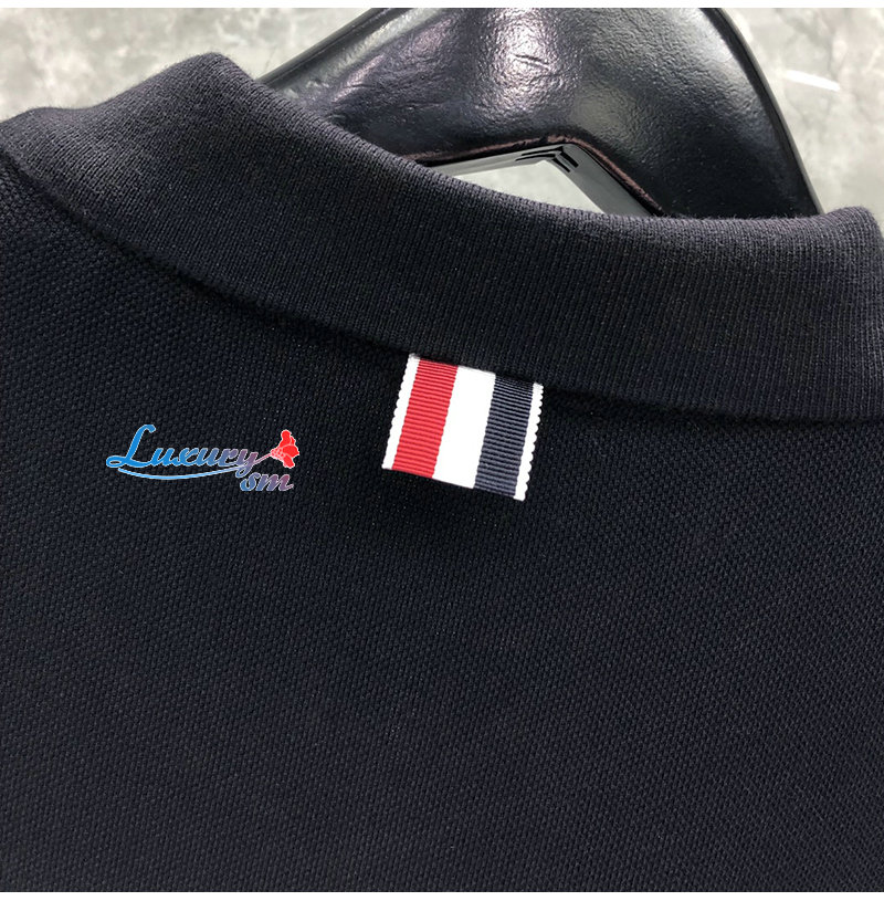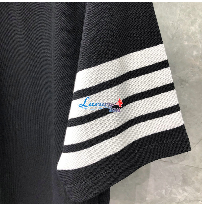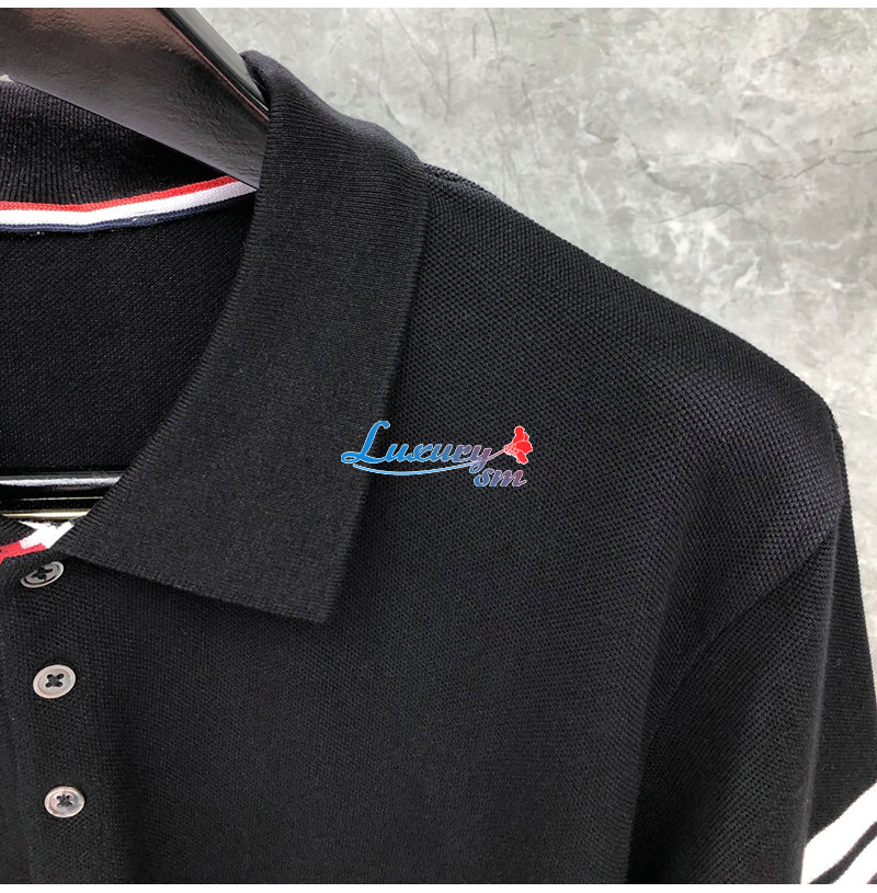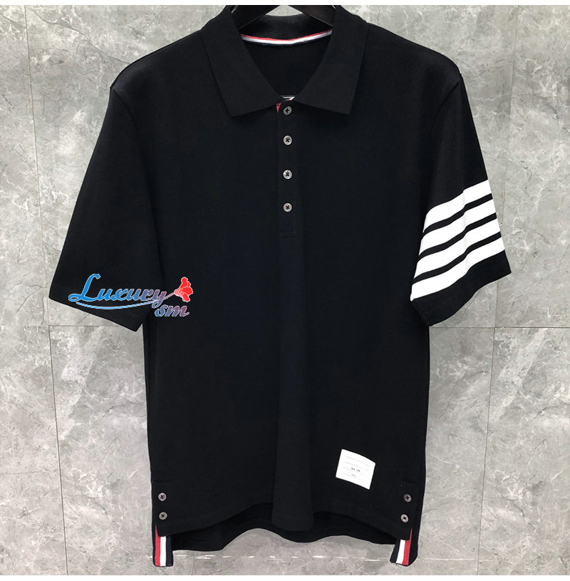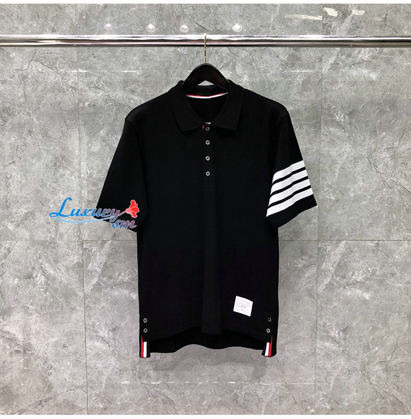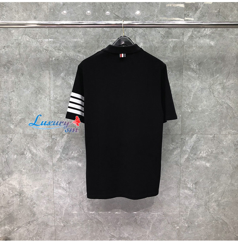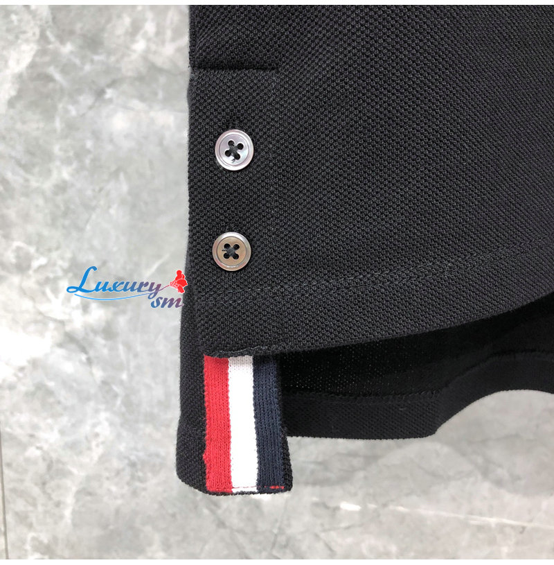 THOM BROWNE-05051 톰 브라운 블랙 스트라이프 장식 폴로 티셔츠 남성용