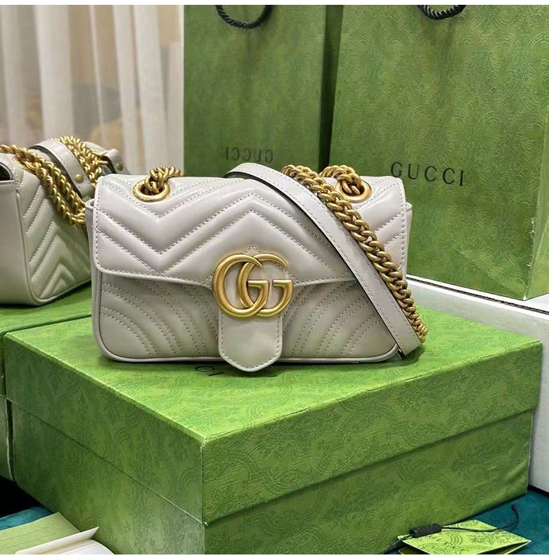 [스페셜오더]GUCCI-446744 9022 구찌 GG 마몽 화이트 가죽 미니 숄더백