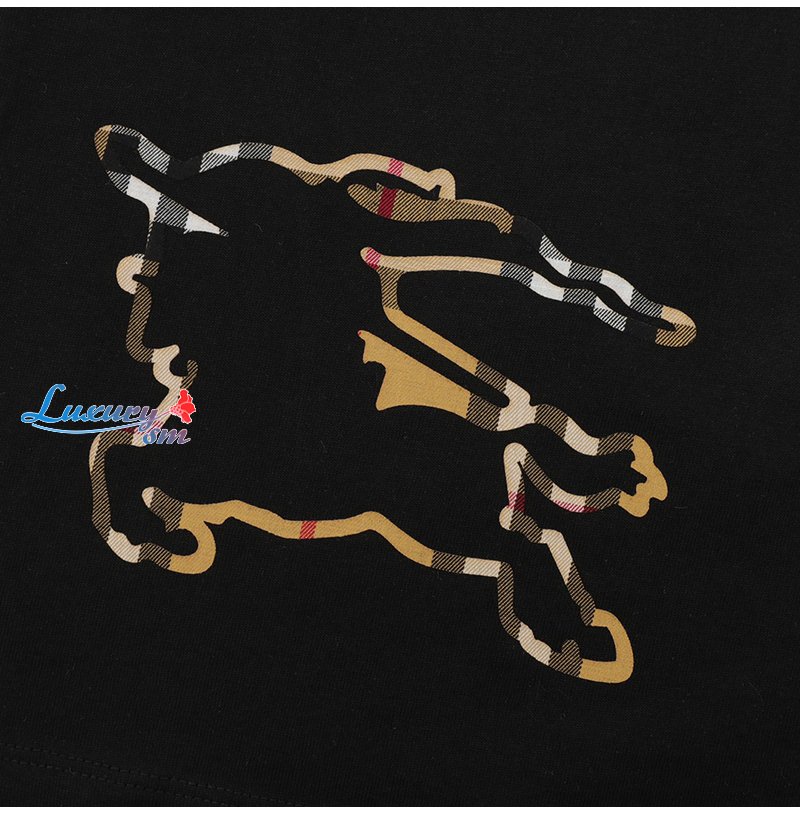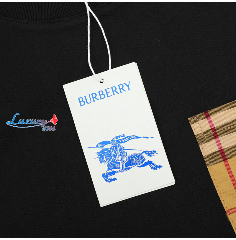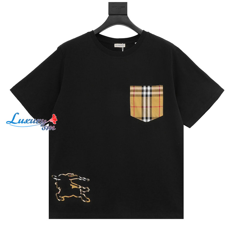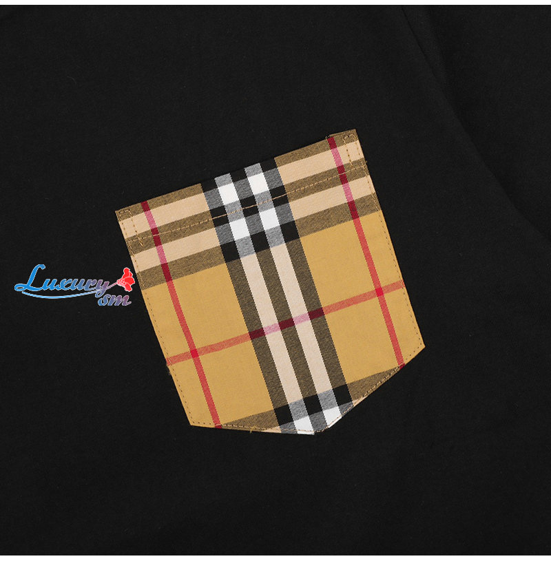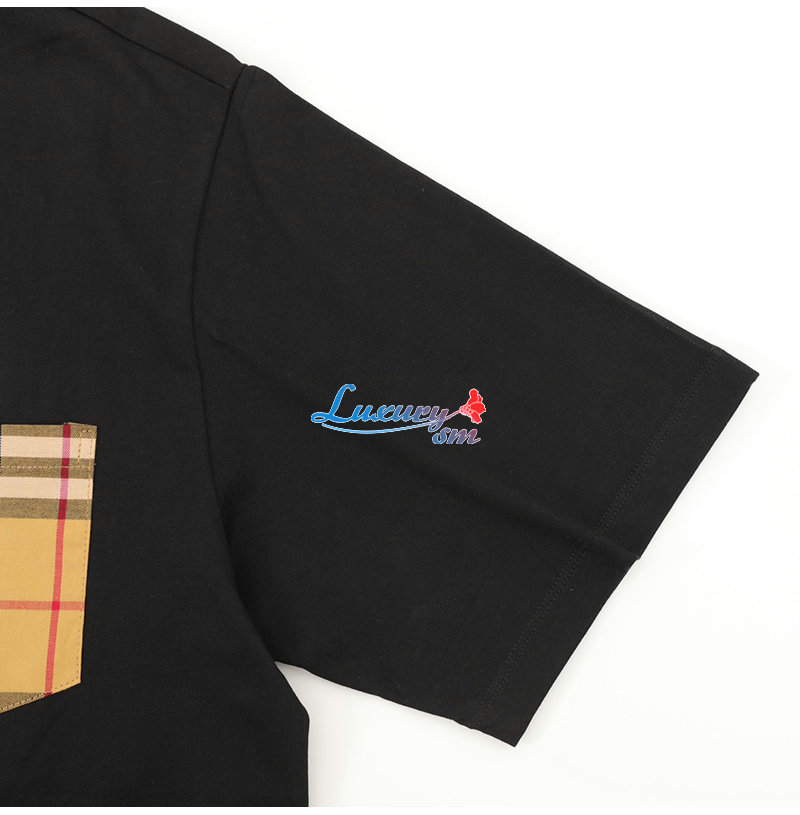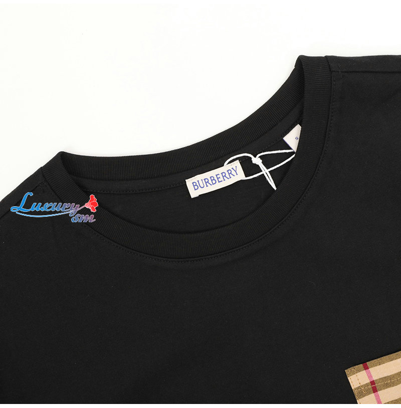 BURBERRY-05137 버버리 블랙 체크 무늬 디테일 티셔츠 남성용