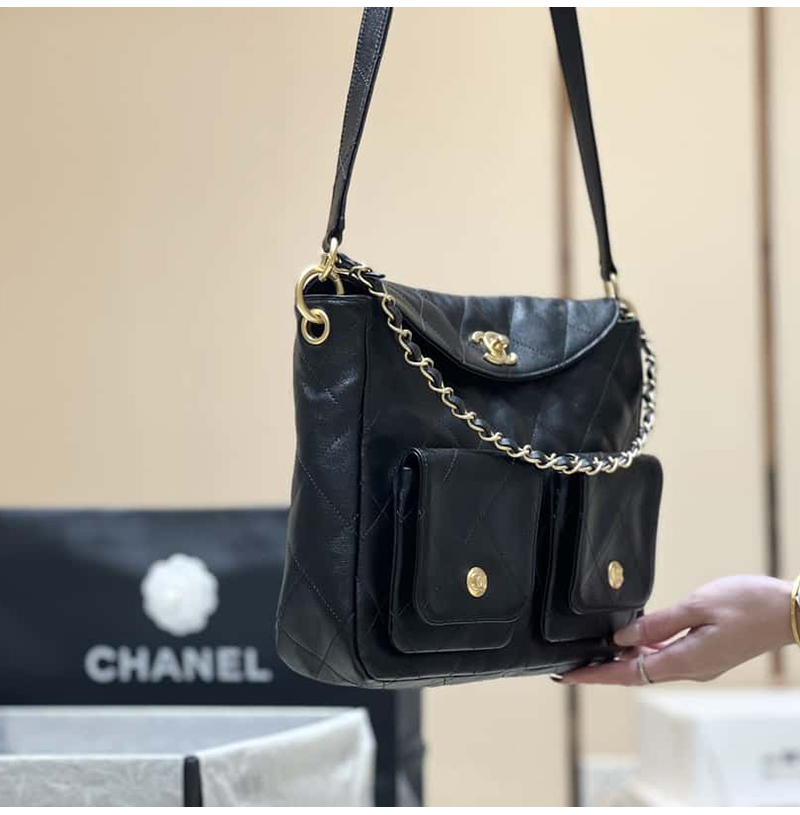 [스페셜오더]CHANEL-AS4743 샤넬 블랙 카프스킨 스몰 호보 백 24cm 가격 : 640,000원