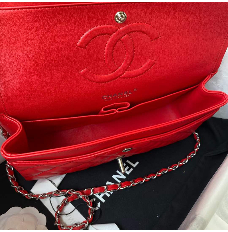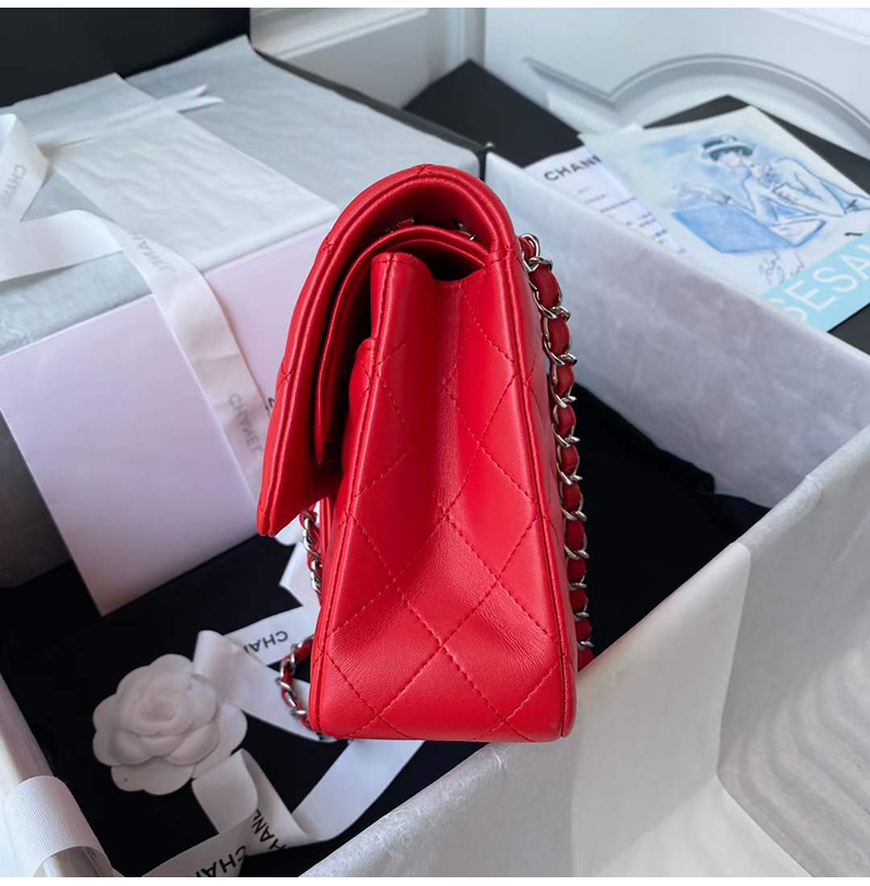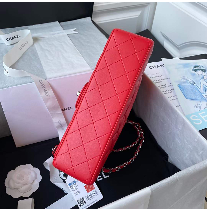 [스페셜오더]CHANEL-A01112 샤넬 레드 램스킨 클래식 11.12 미디엄 플랩 백 25.5cm Silver-Tone Metal