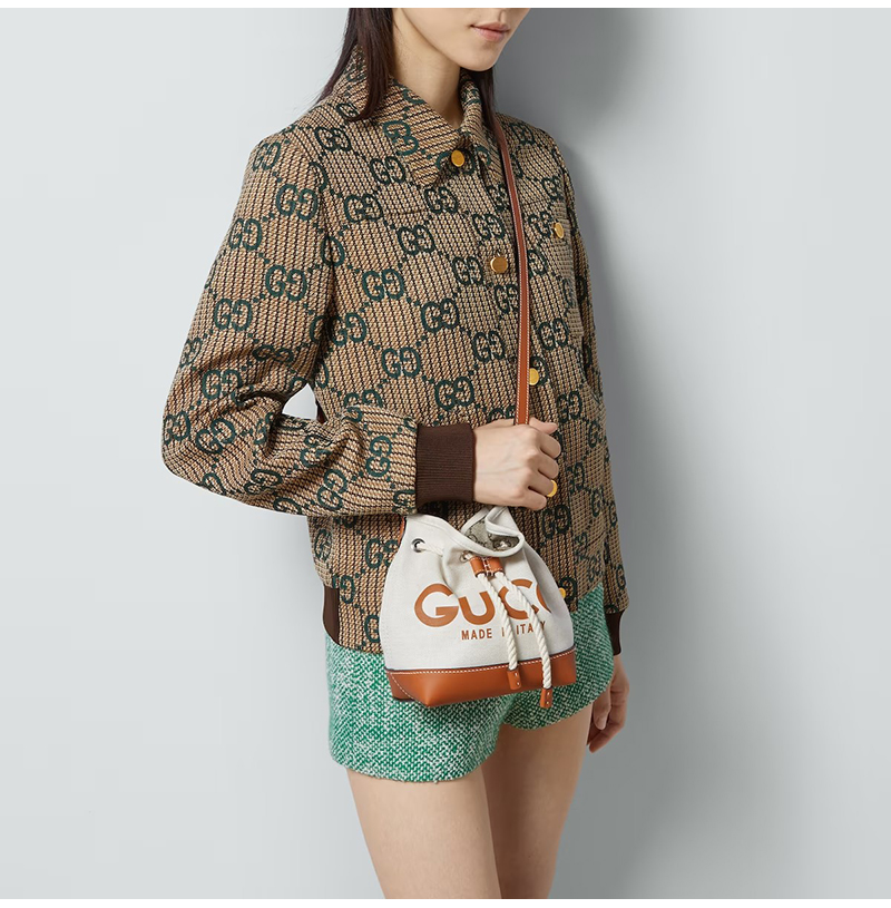 Gucci Made in Italy 프린트가 매력적인 베이지