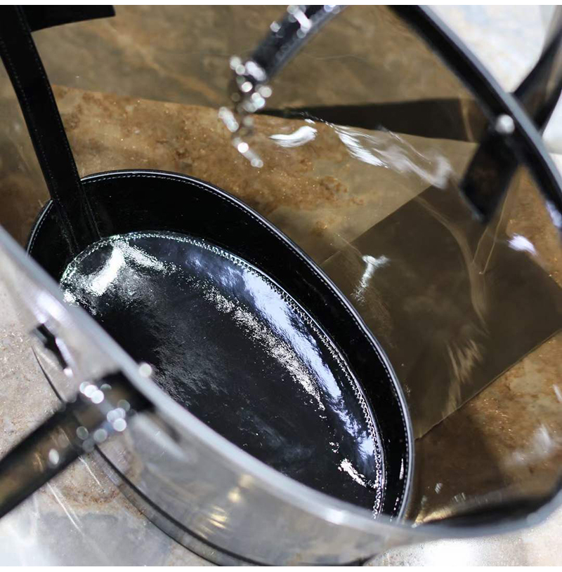 제품소재 : 투명한 비닐 소재 / 베지터블 태닝 가죽 트리밍