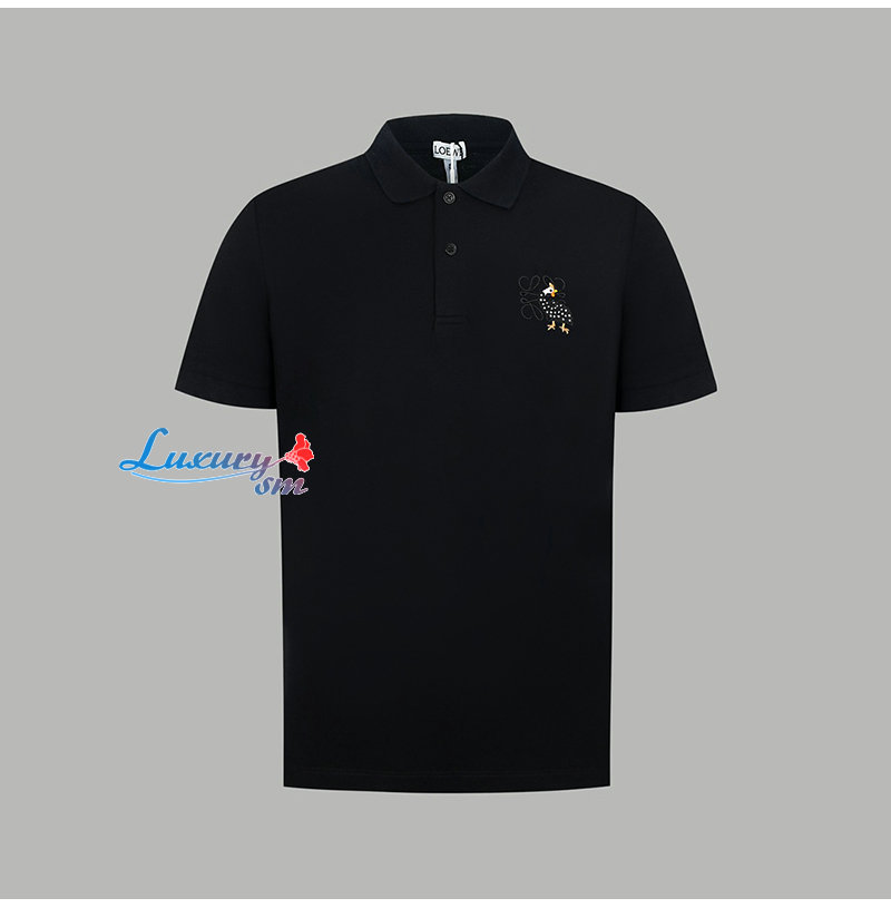 LOEWE-06015 로에베 블랙 로고 아플리케 장식 폴로 티셔츠 남성용