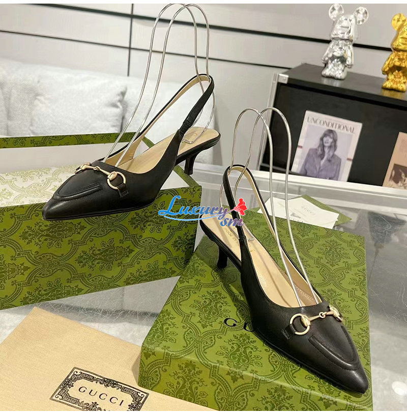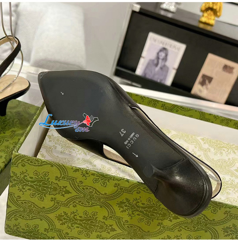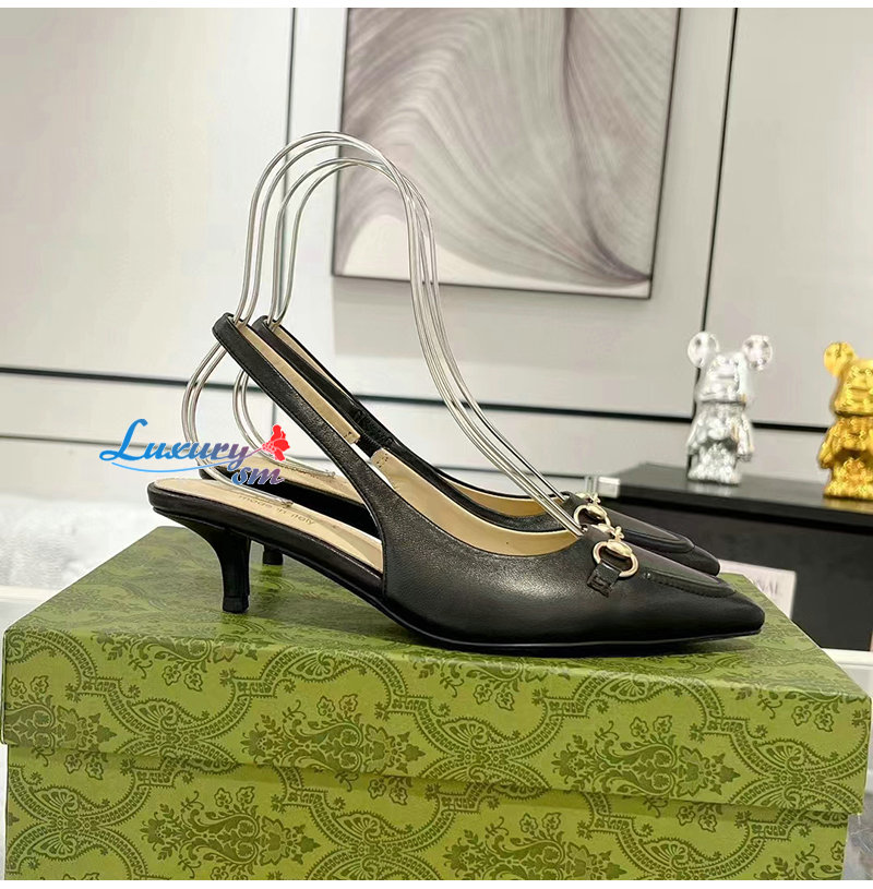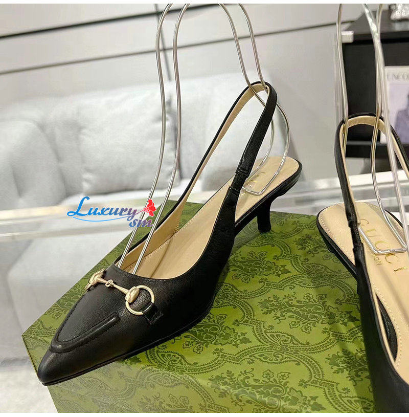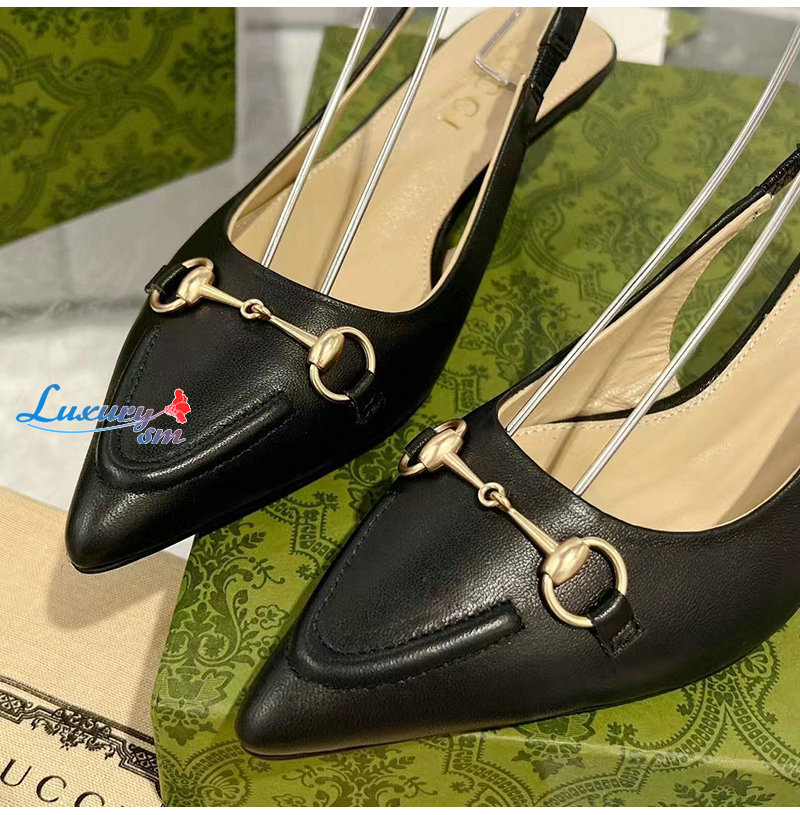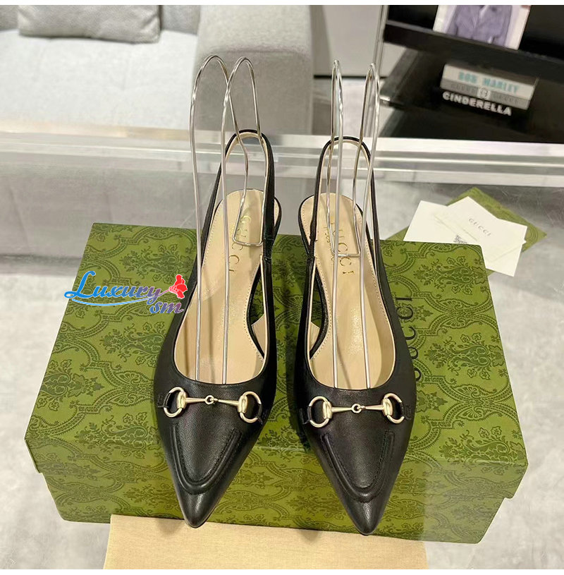 GUCCI-782407 1000 구찌 블랙 가죽 홀스빗 슬링백 펌프스