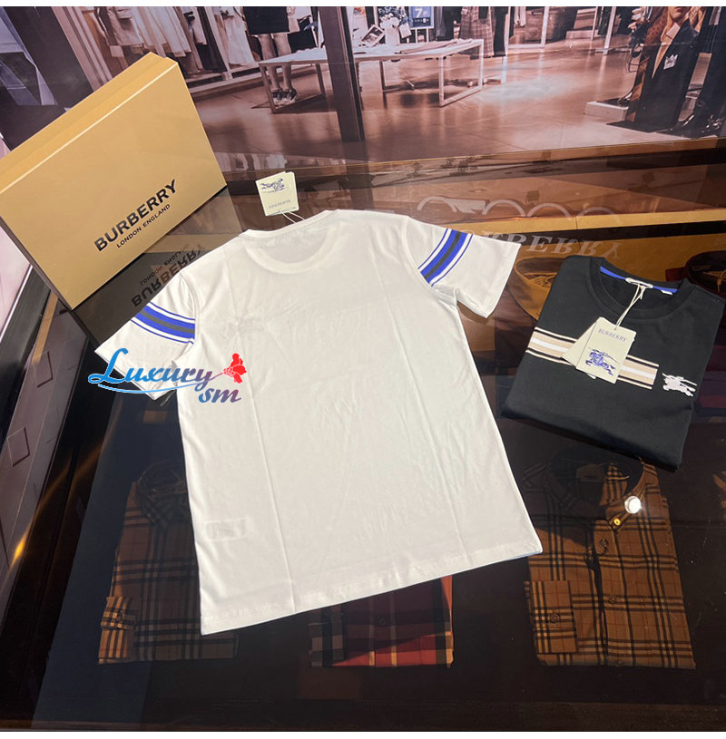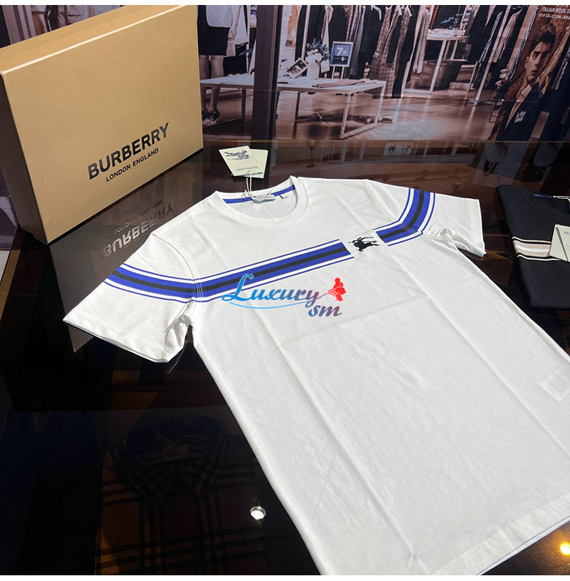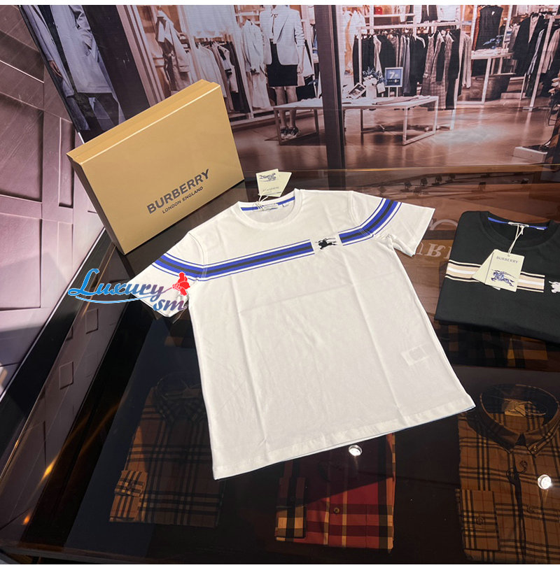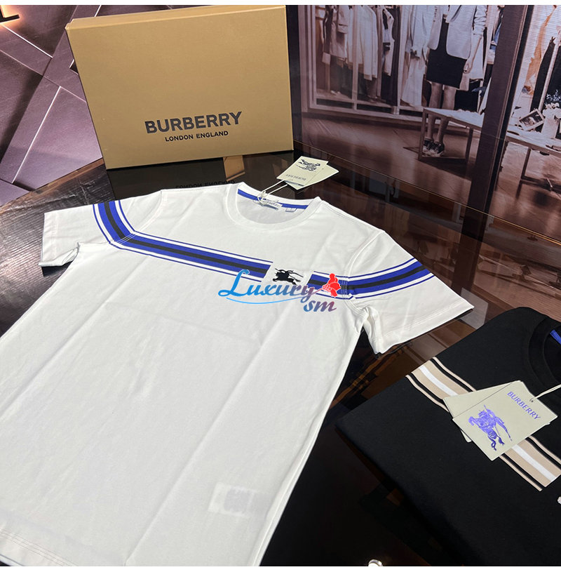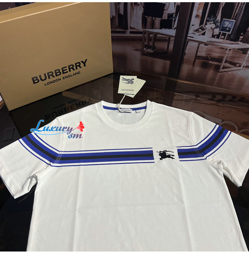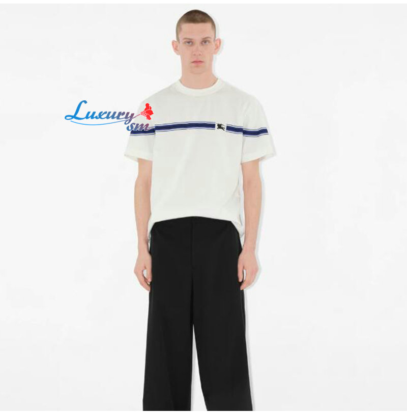 BURBERRY-80904361 버버리 화이트 스트라이프 코튼 티셔츠 남성용