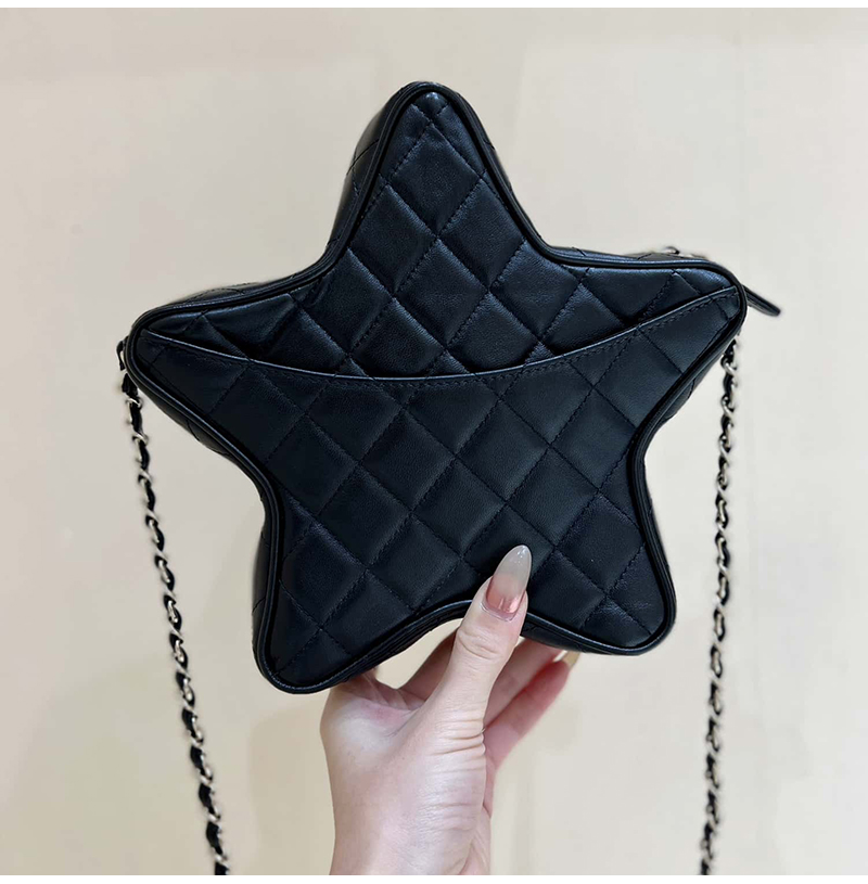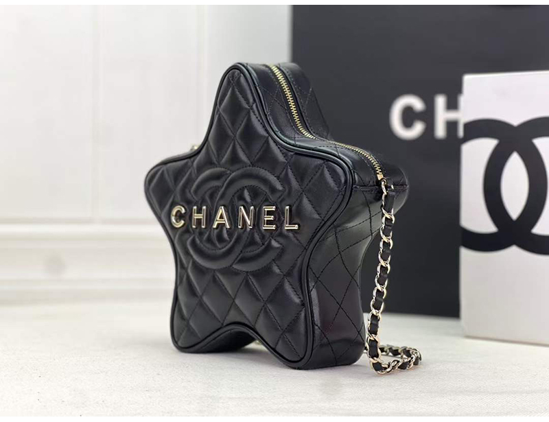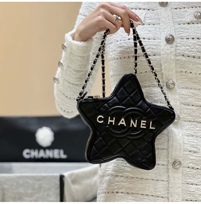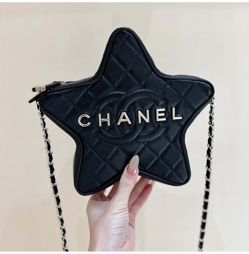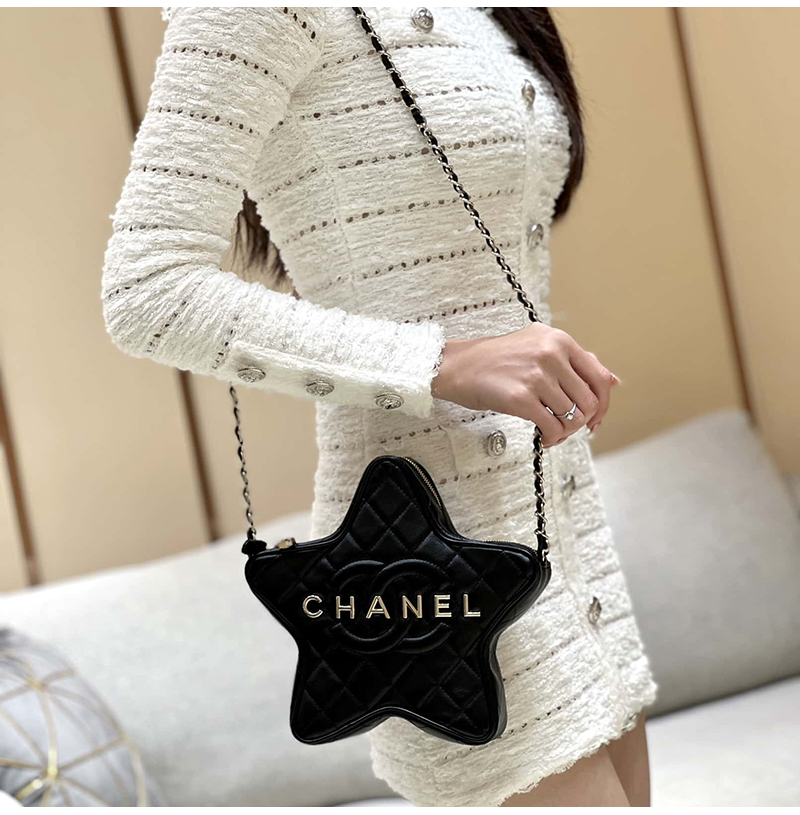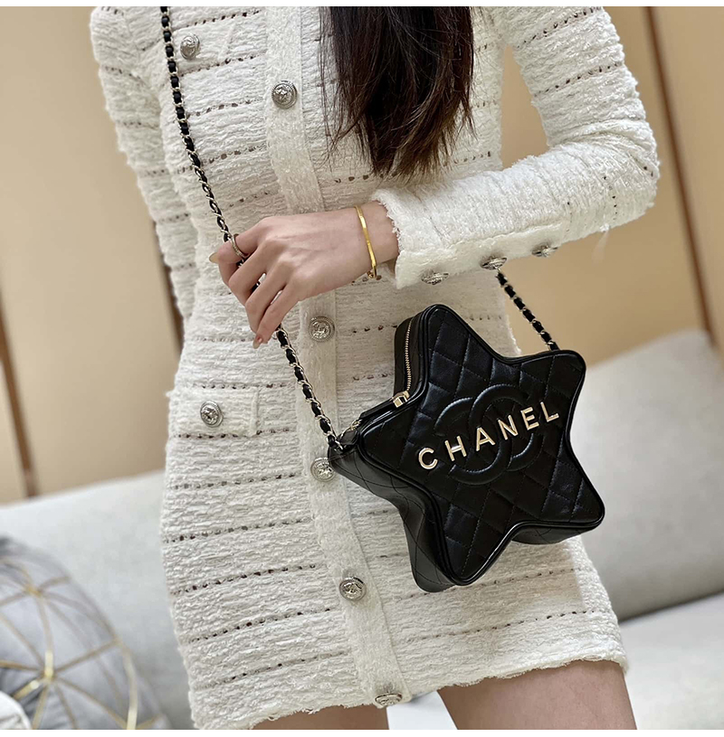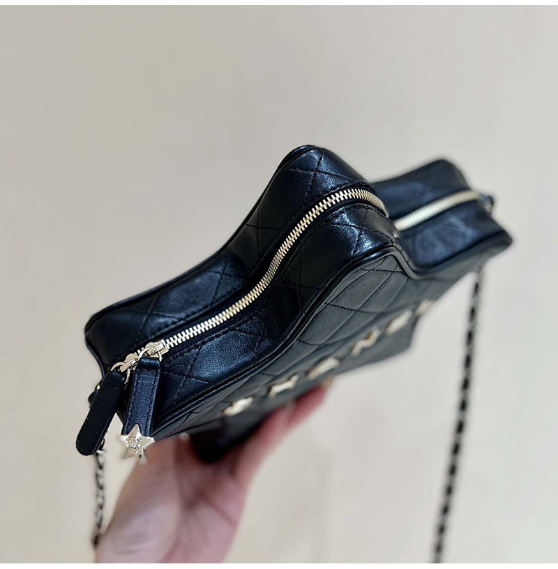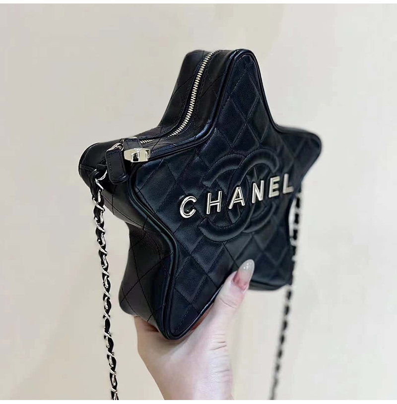 스타 쉐입의 유니크한 CHANEL 레터링 크로스백.