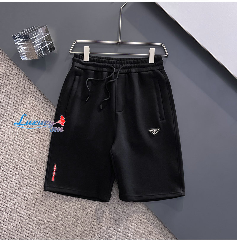 PRADA-06225 프라다 블랙 트라이앵글 로고 스웨트쇼츠 남성용