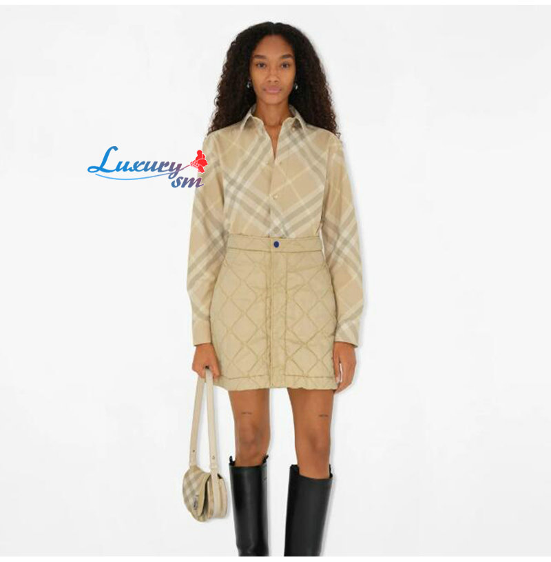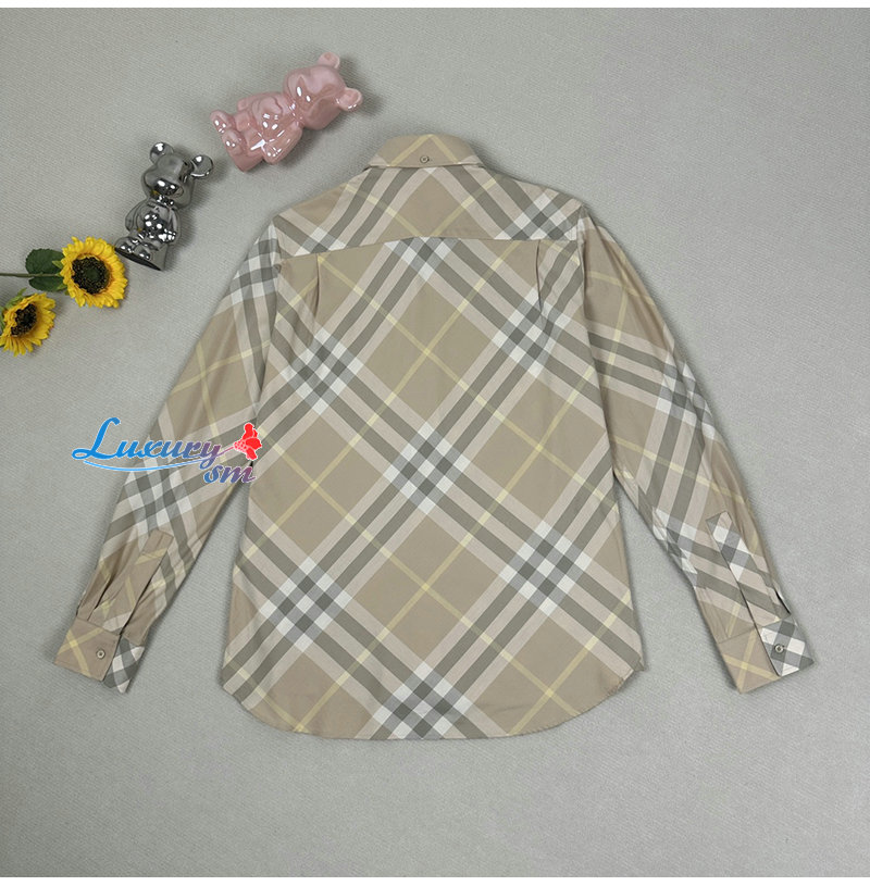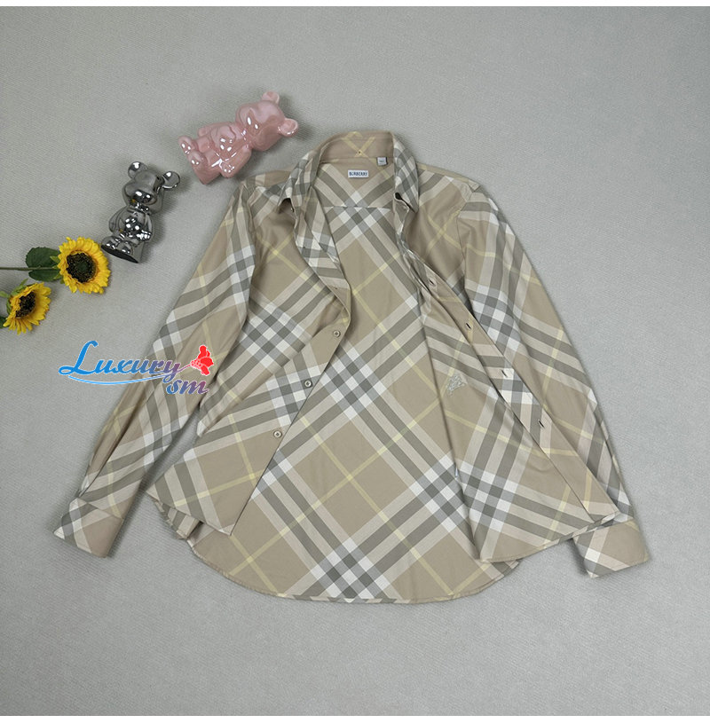 BURBERRY-80835941 버버리 베이지 체크 코튼 셔츠 여성용