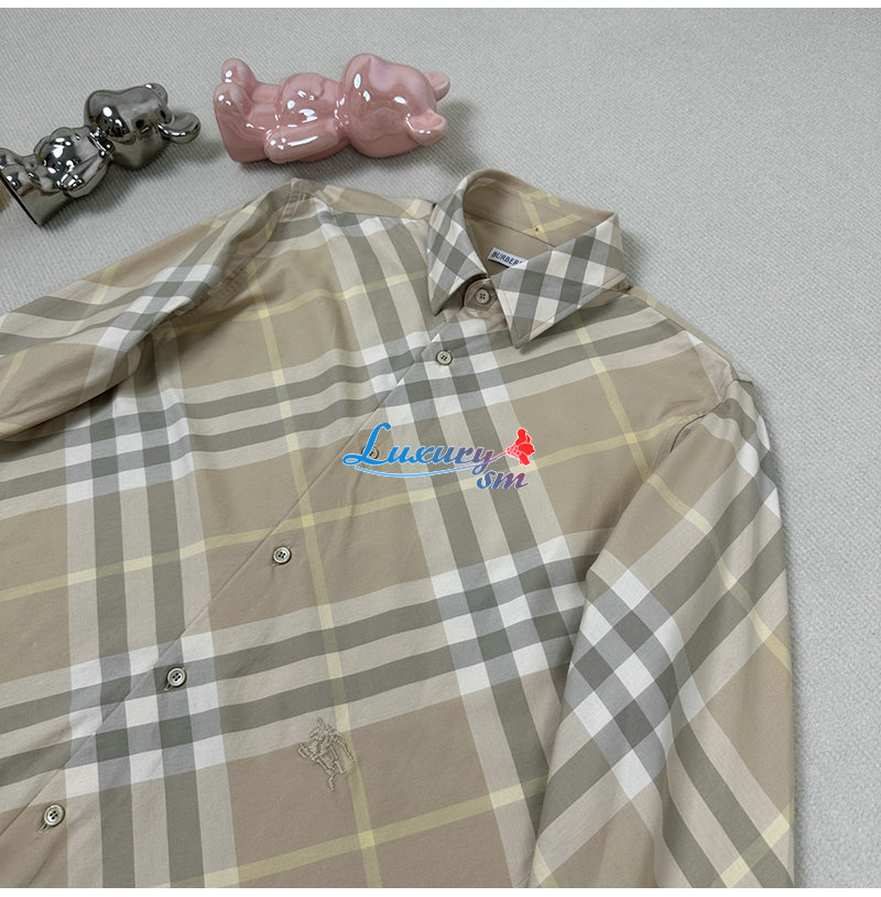 버버리 체크가 연출된 면 트윌 소재의 포인트 칼라