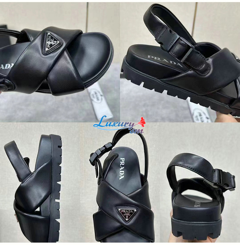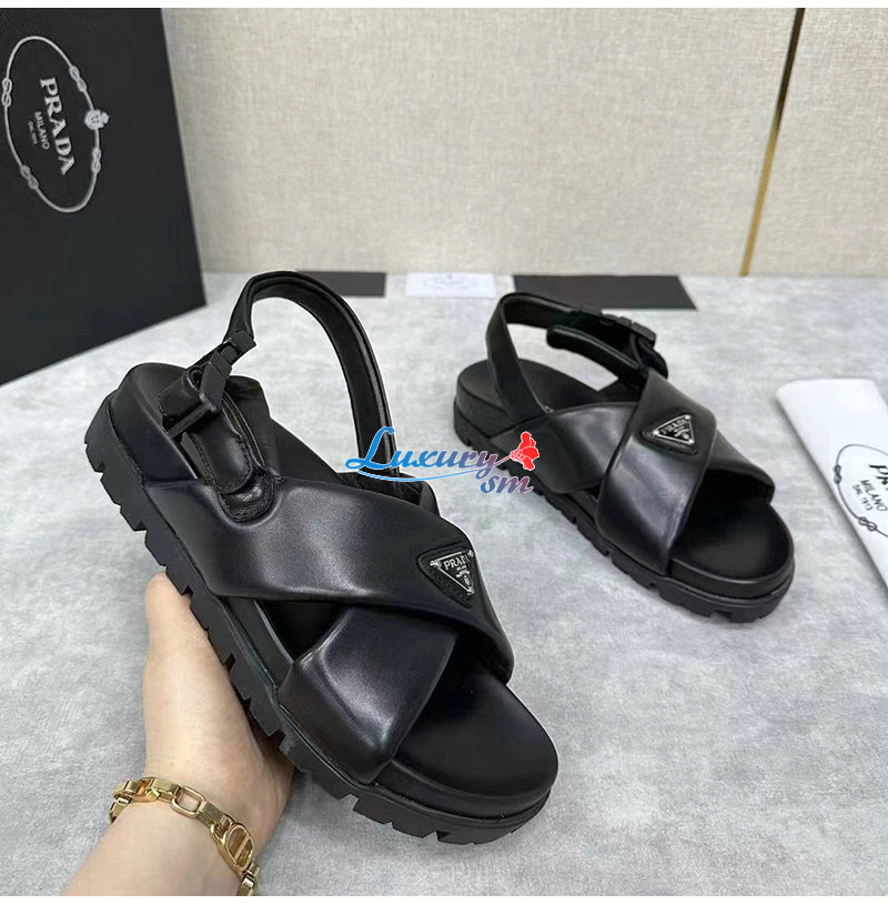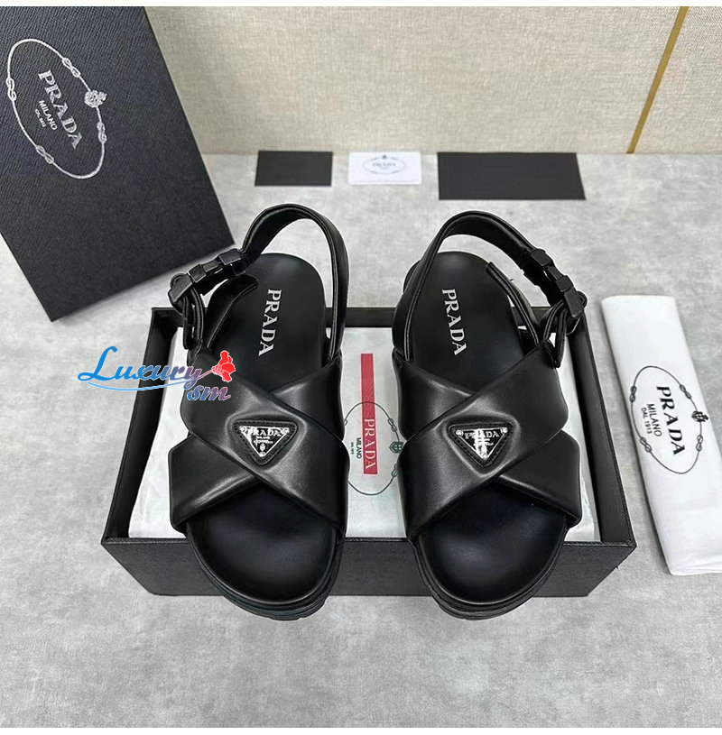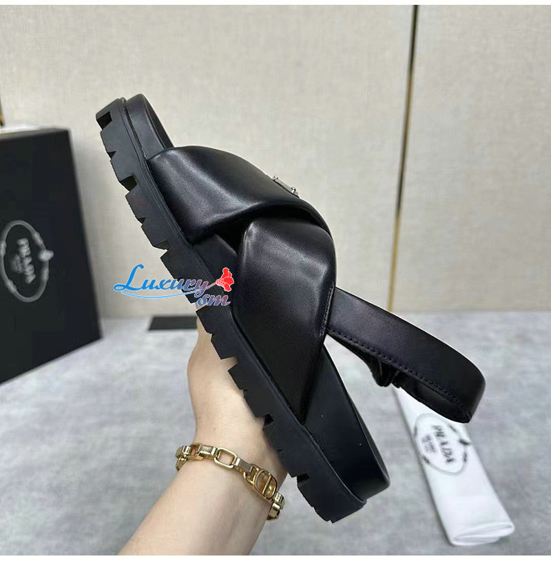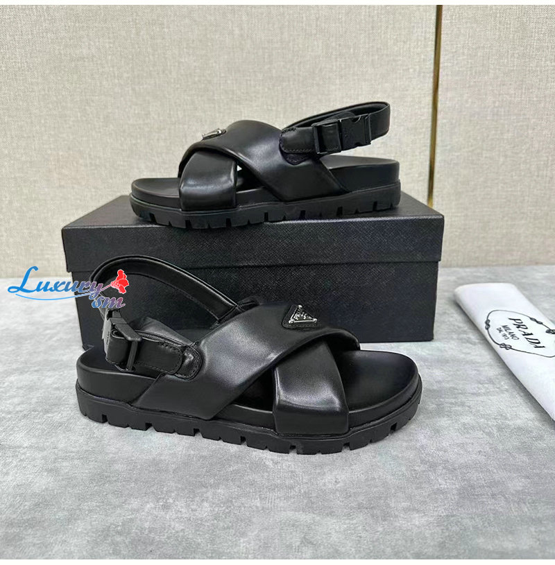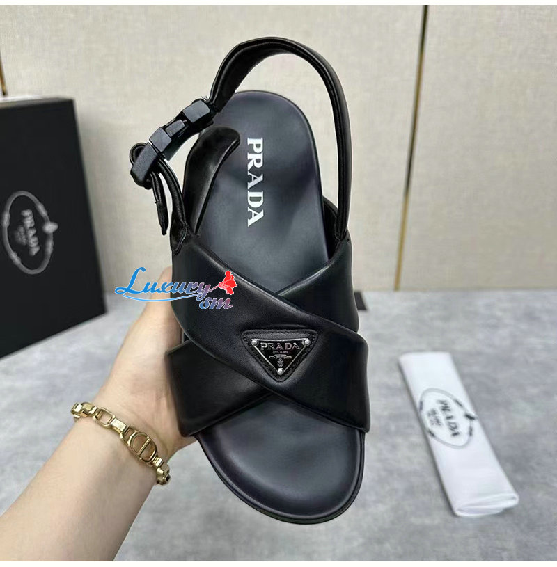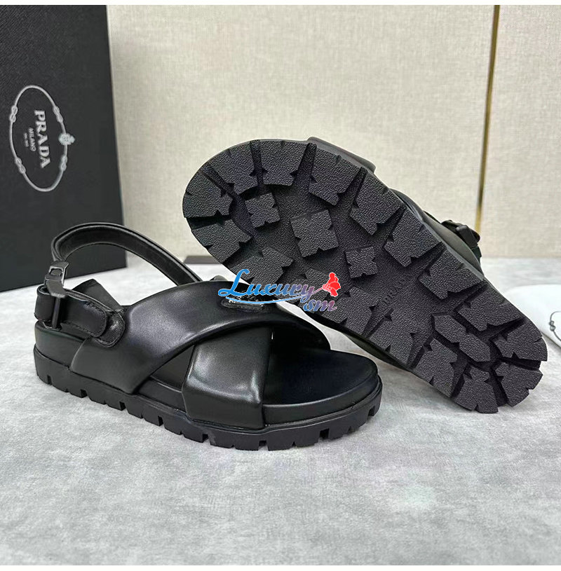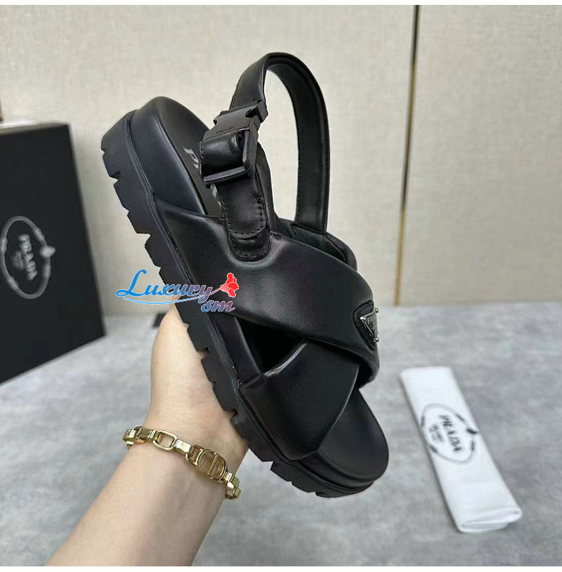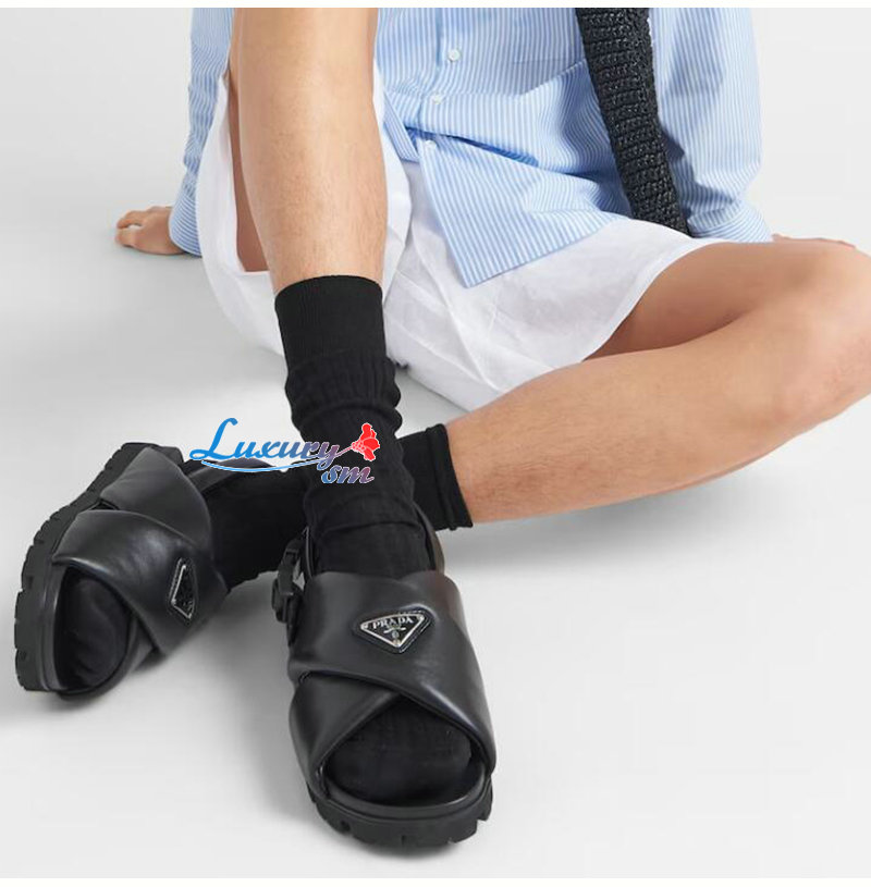 PRADA-2X3089 프라다 블랙 패딩 나파 가죽 크리스크로스 샌들 남성용