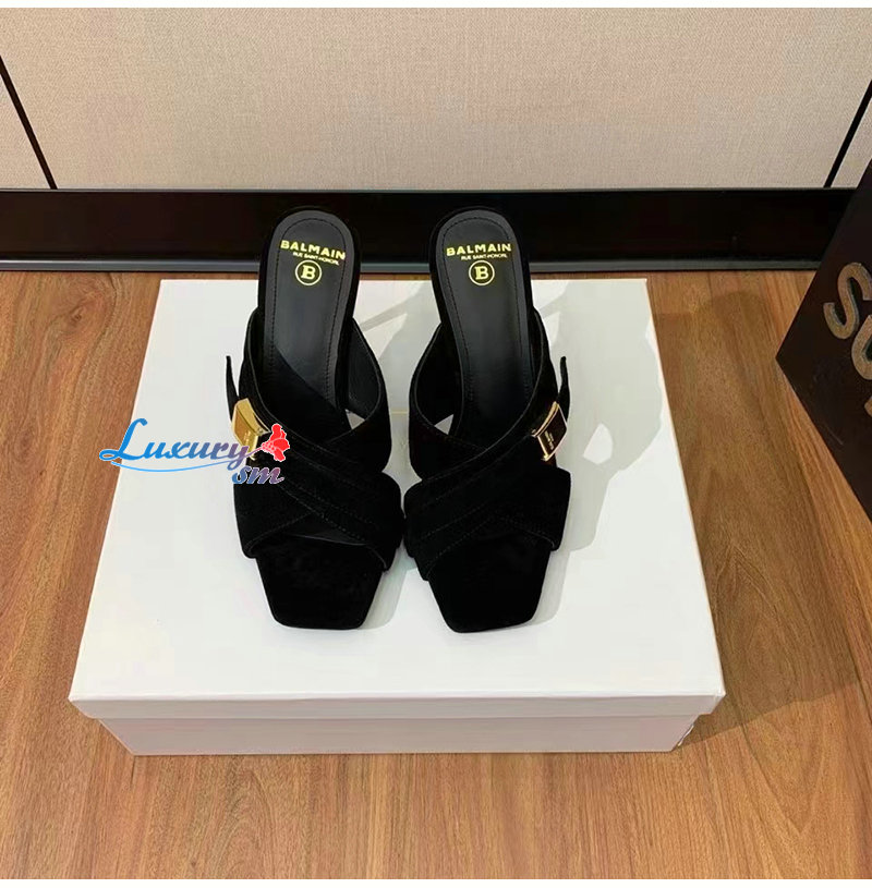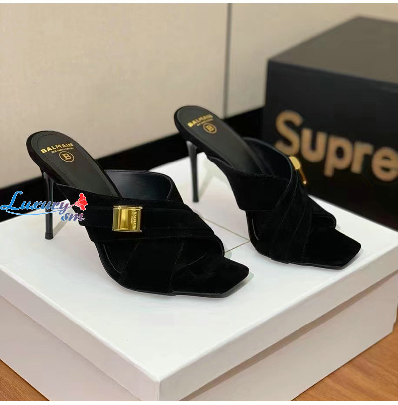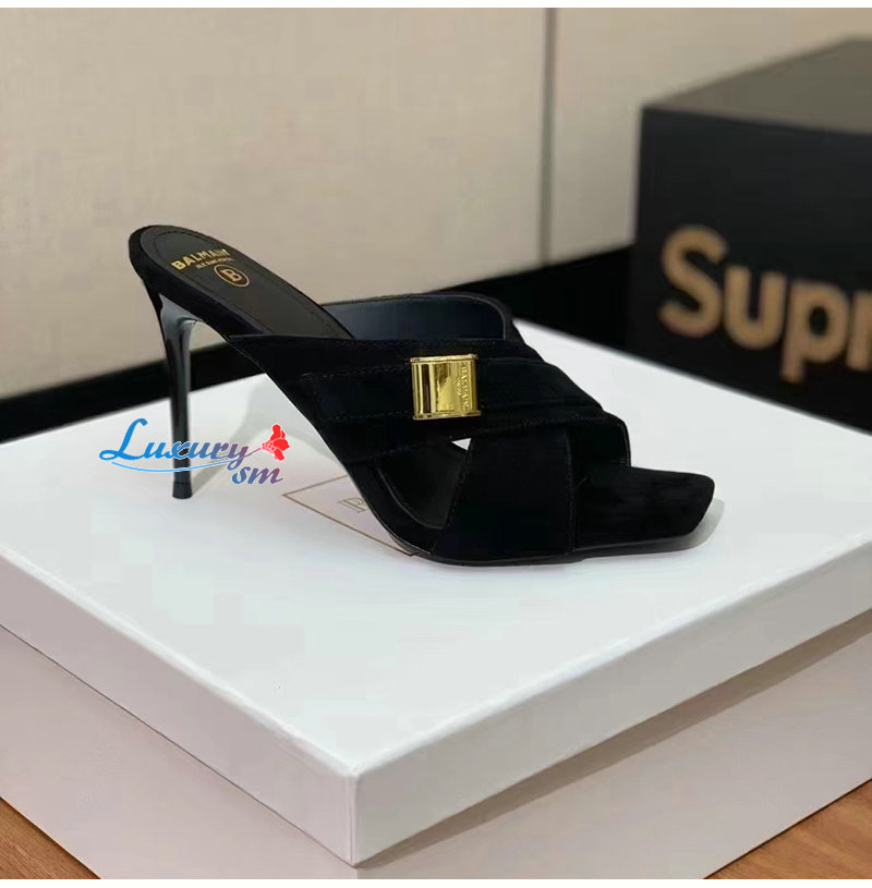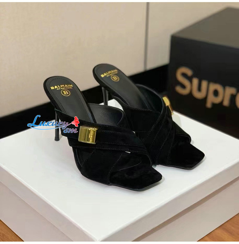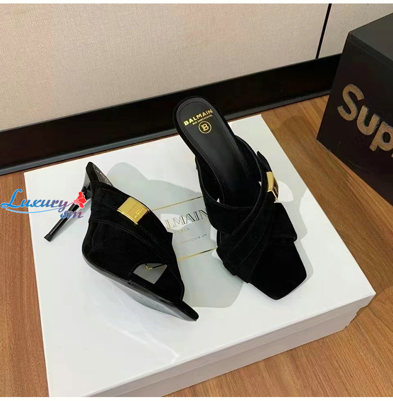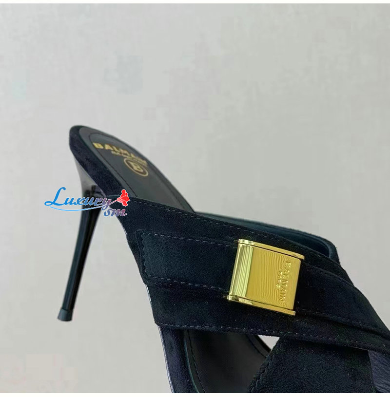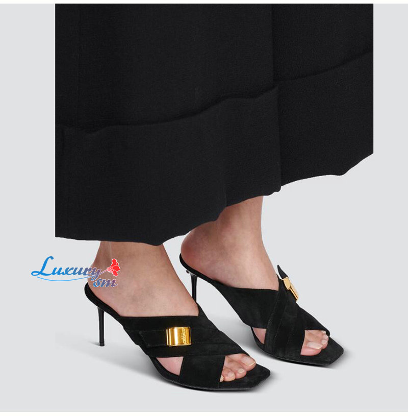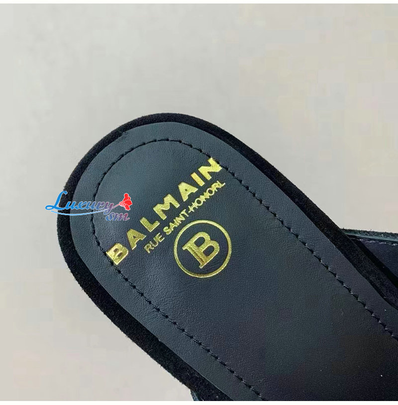 BALMAIN-CN1UR978 발망 블랙 스웨이드 가죽 Uma 뮬