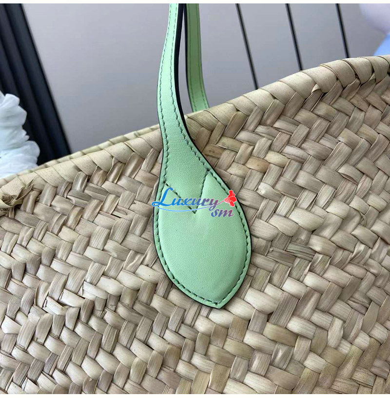 천연 우븐 스트로우 / 페일 그린 가죽 트리밍