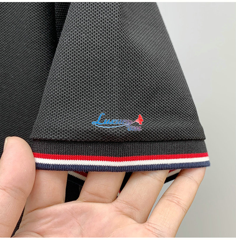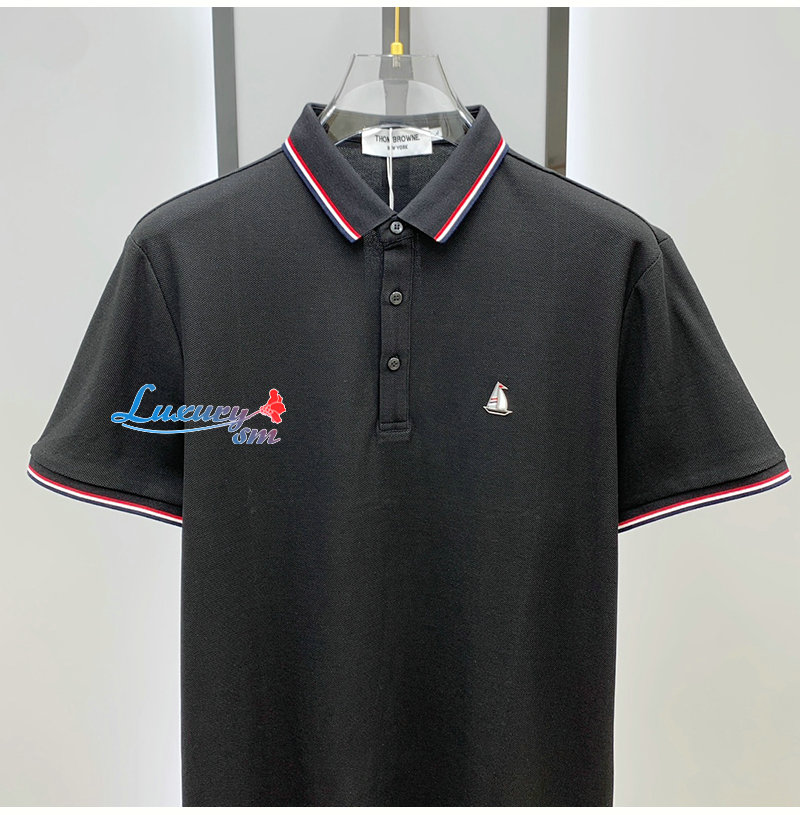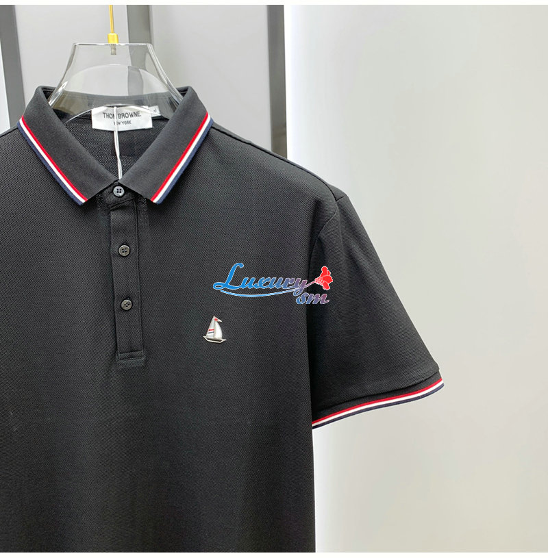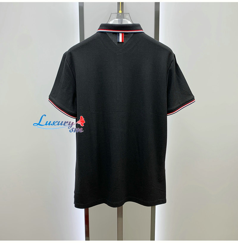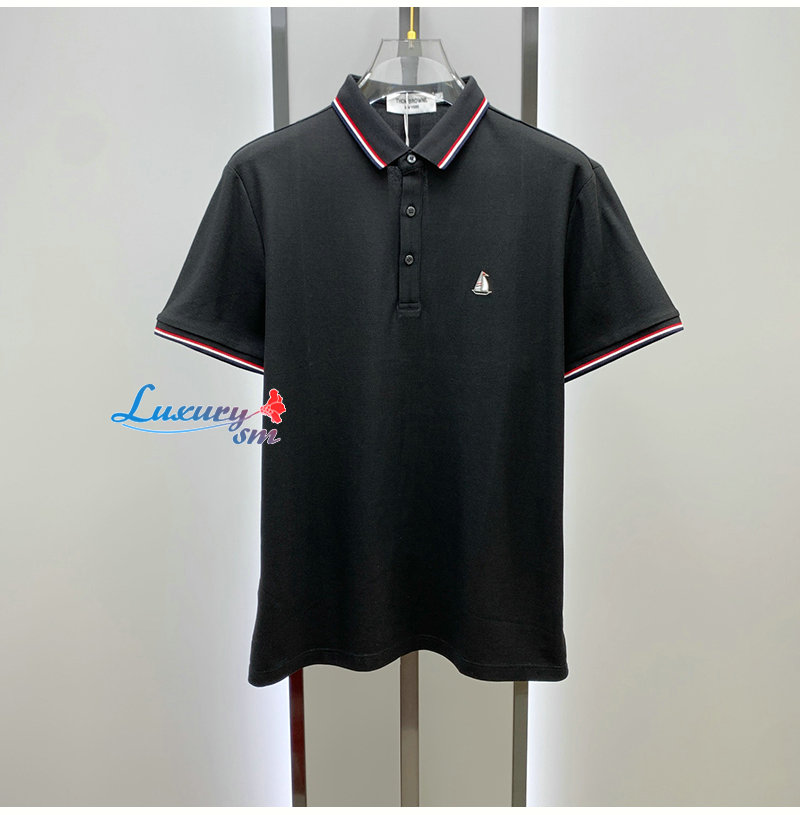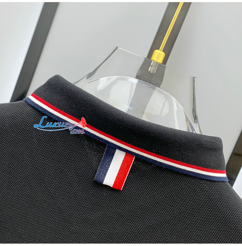 THOM BROWNE-07232 톰 브라운 블랙 스트라이프 장식 폴로 티셔츠 남성용