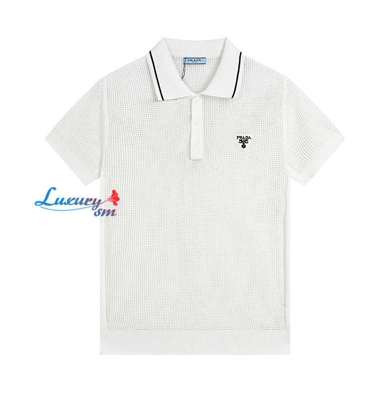 PRADA-07294 프라다 화이트 니트 코튼 폴로 티셔츠 남여공용