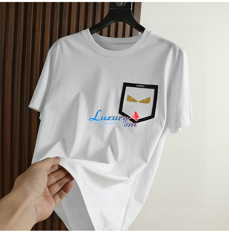 FENDI-08072 펜디 화이트 백 버그 아이 장식 티셔츠 남성용