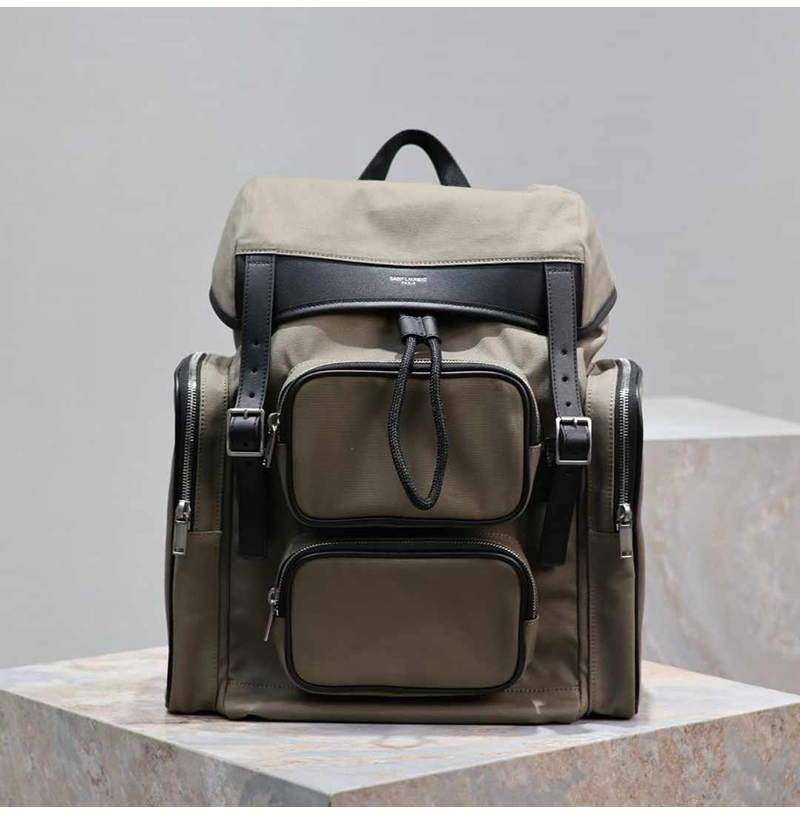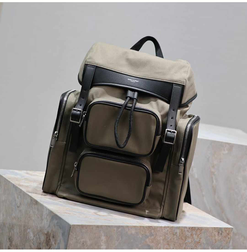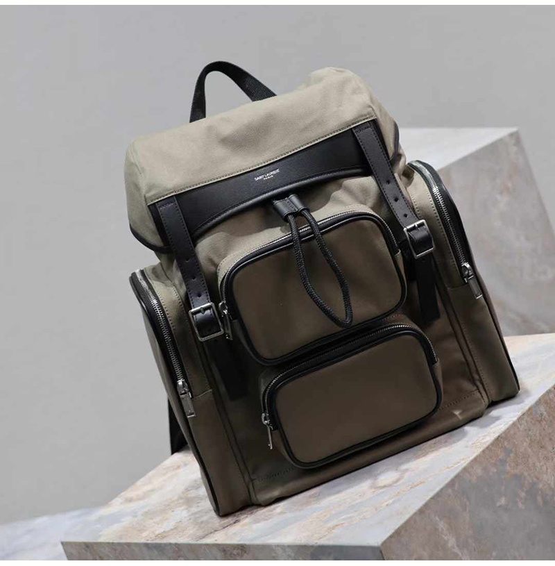 [스페셜오더]YSL-437110 생로랑레플 카키 나일론 CITY 멀티 포켓 백팩 34cm