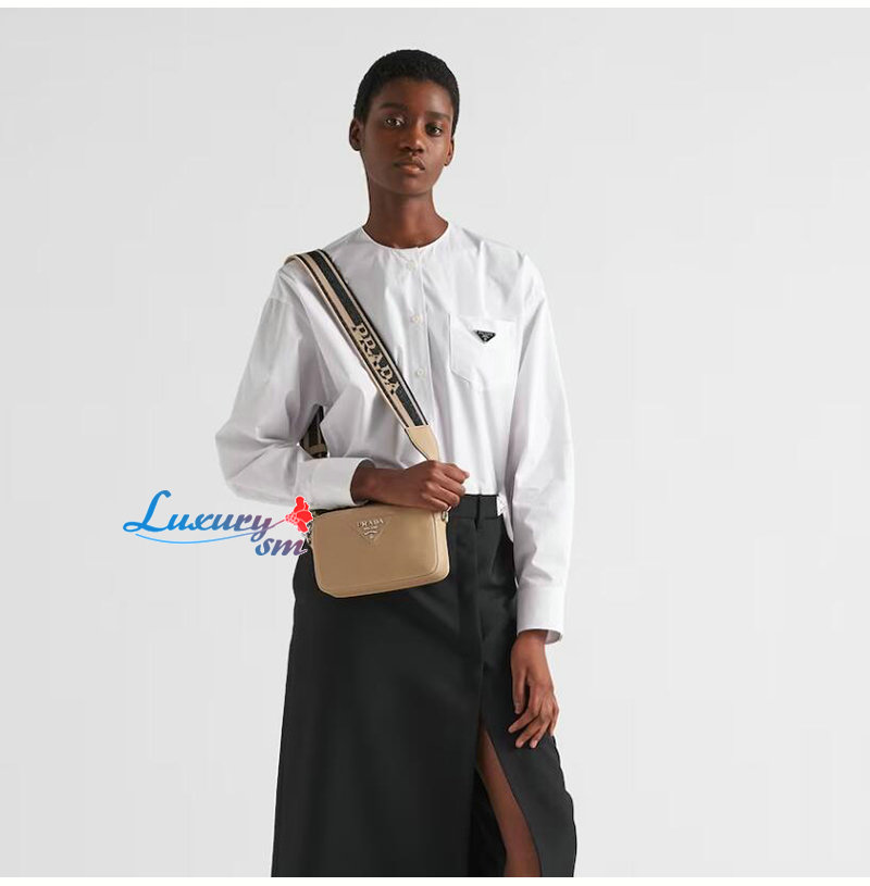 부드러운 라인의 소형 가죽 숄더백으로, 프라다