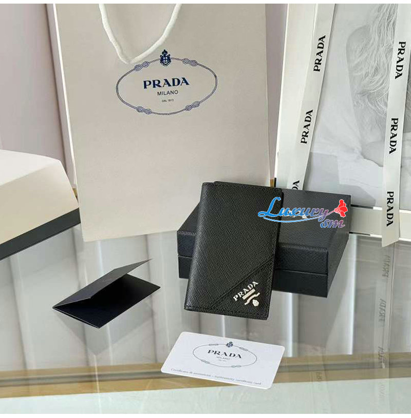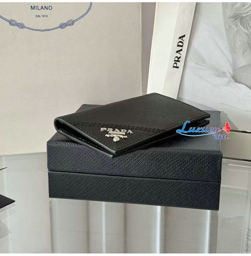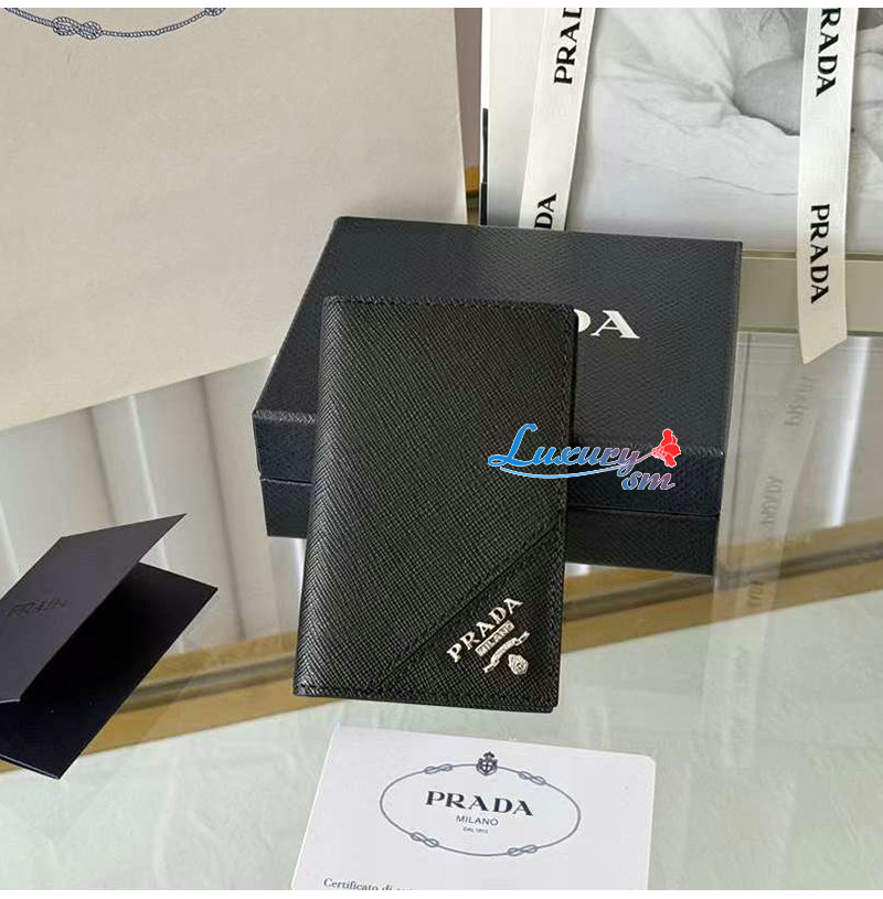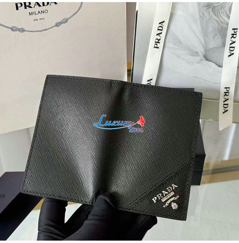 [스페셜오더]PRADA-2MC101 프라다 블랙 메탈 로고 사피아노 가죽 카드 홀더