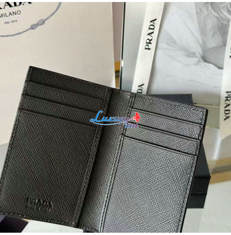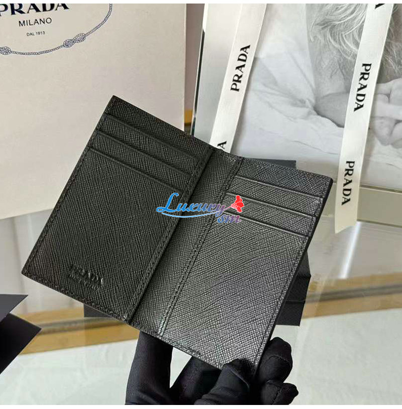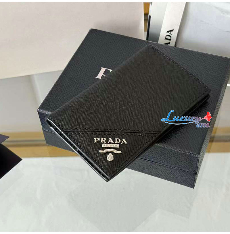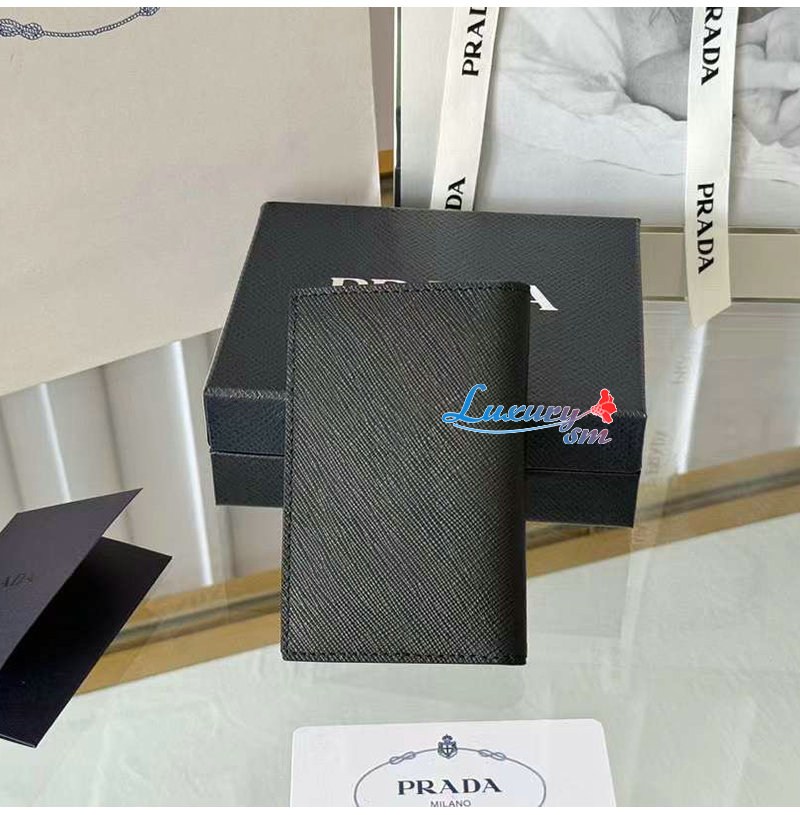 [스페셜오더]PRADA-2MC101 프라다 블랙 트라이앵글 로고 사피아노 가죽 카드 홀더