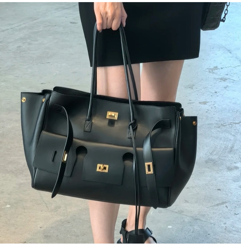 [스페셜오더]BALENCIAGA-발렌시아가 블랙 골드 벨 에어 미디엄 캐리 올 백 37cm - 8054812ABAV1000