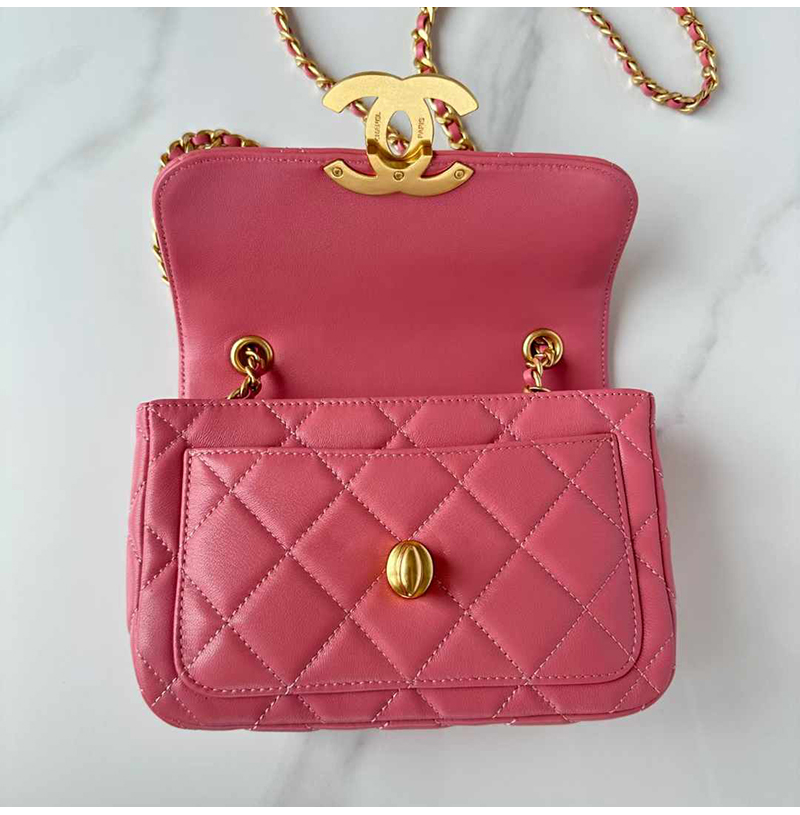 [스페셜오더]CHANEL-AS5026 샤넬 24FW 핑크 램스킨 미니 이미테이션 플랩 백 19cm