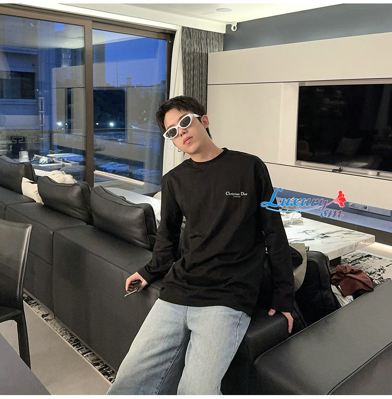 DIOR-09026 디올 블랙 프린트 장식 긴팔 티셔츠
