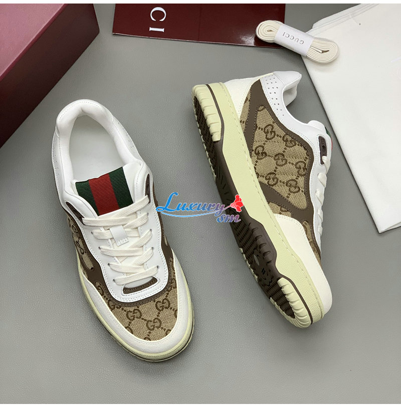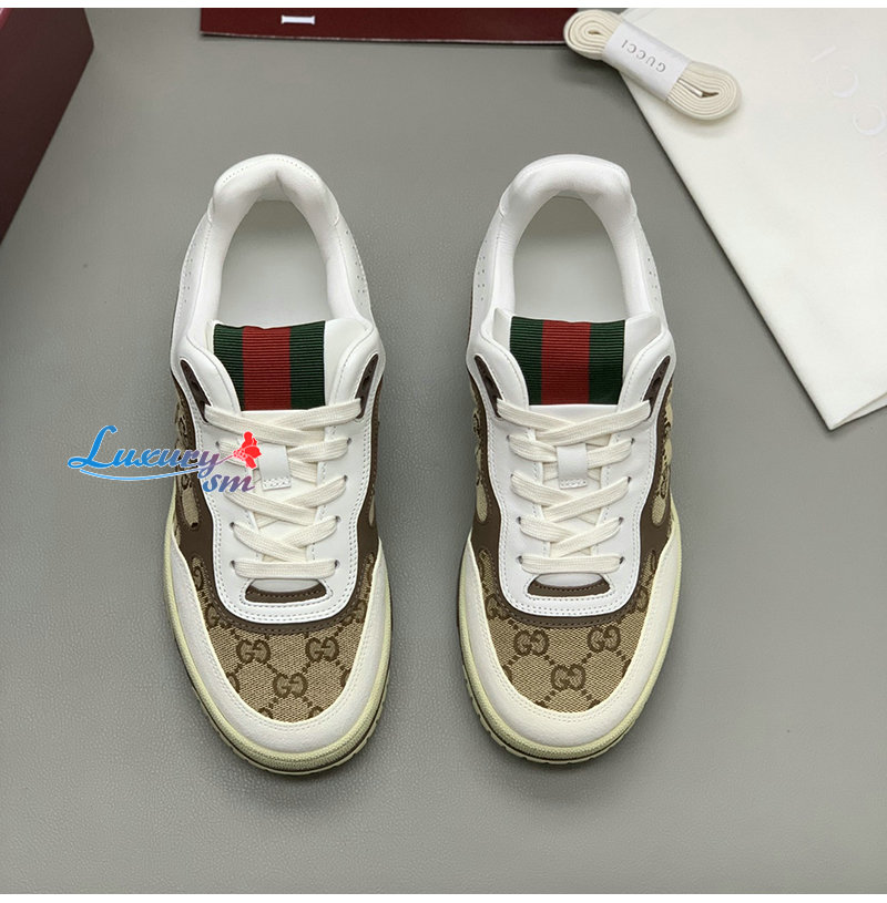 GUCCI-787476 9568 구찌 화이트/브라운 구찌 리웹 스니커즈 남여공용