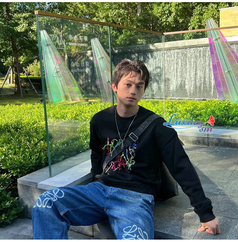 LOEWE-09263 로에베 블랙 아플리케 장식 스웨트셔츠 남여공용