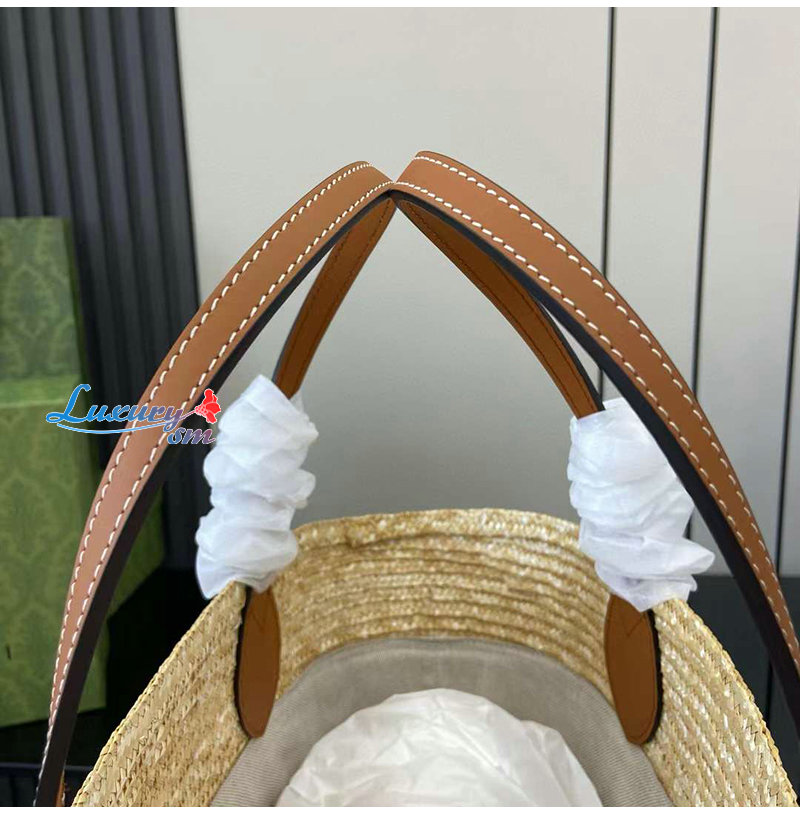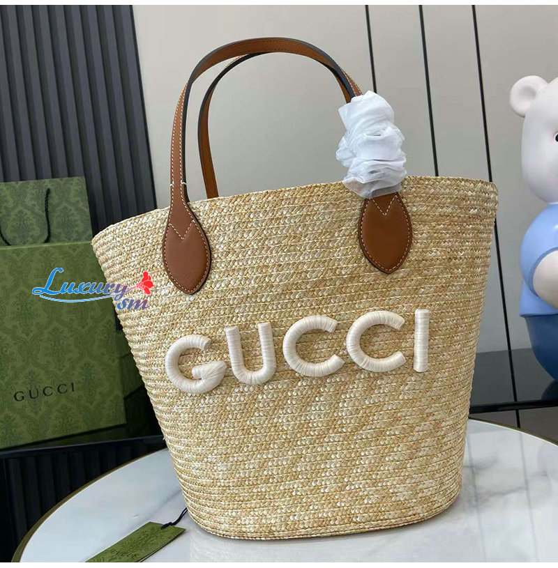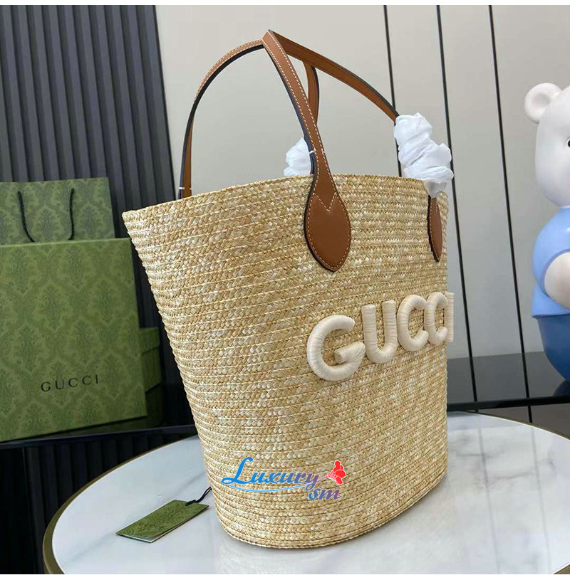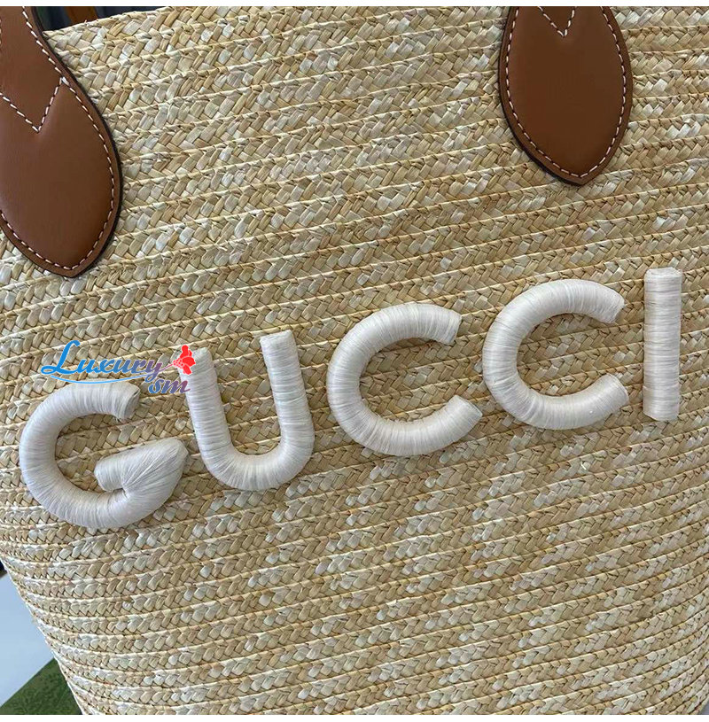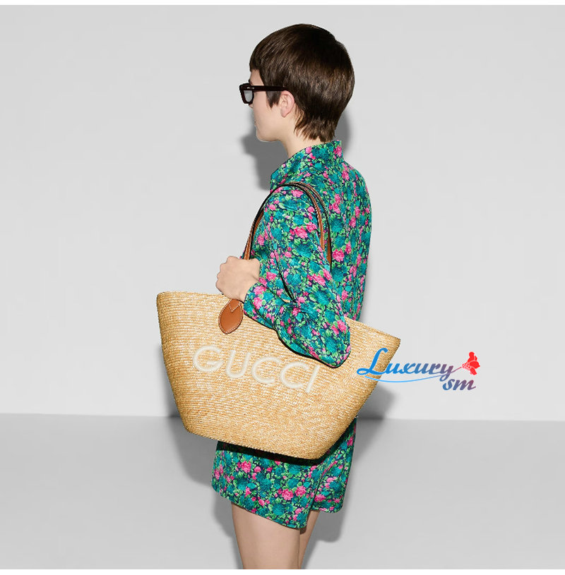 [스페셜오더]GUCCI-779530 9541 구찌 베이지 구찌 패치 디테일 미디엄 스트로우 토트백