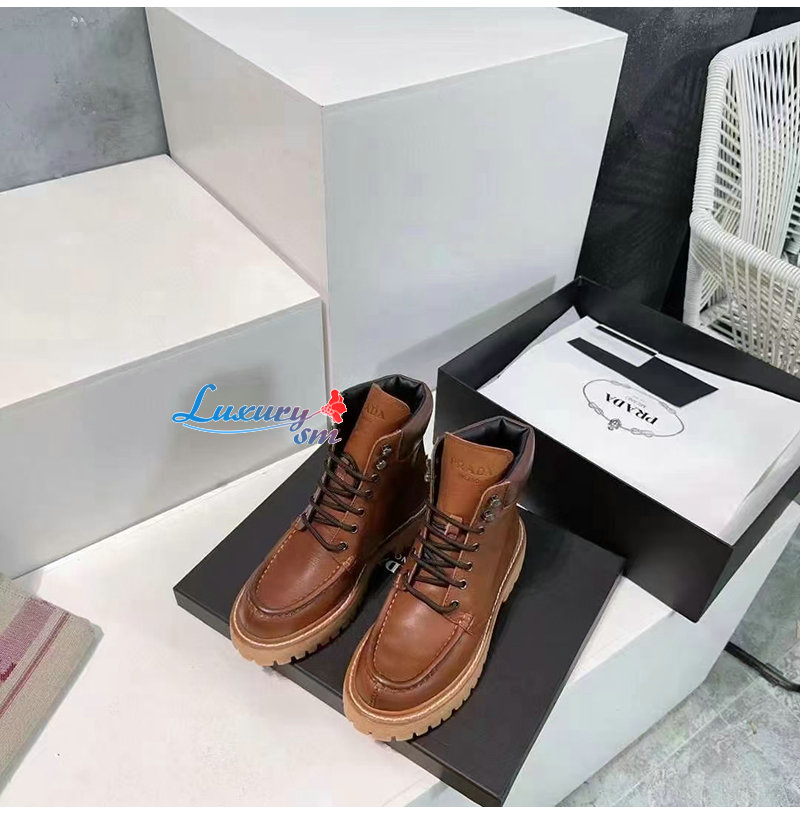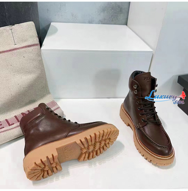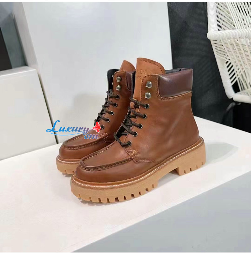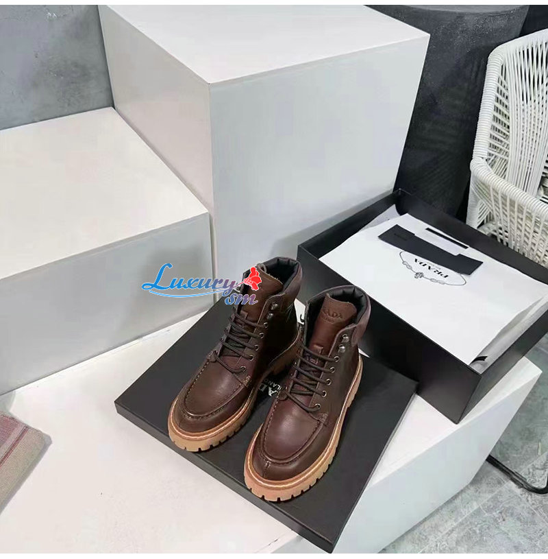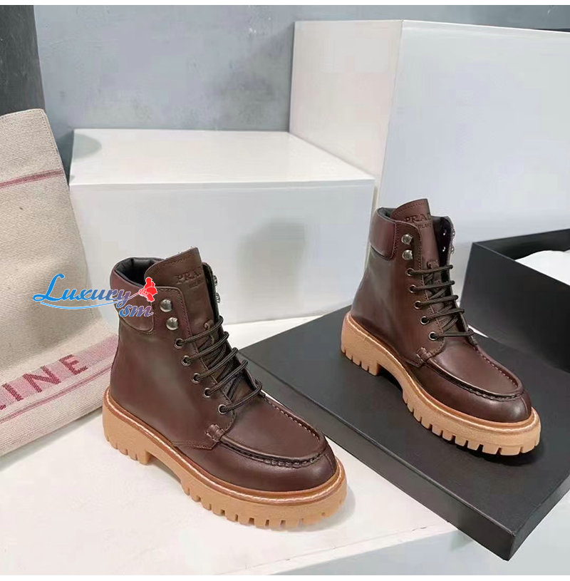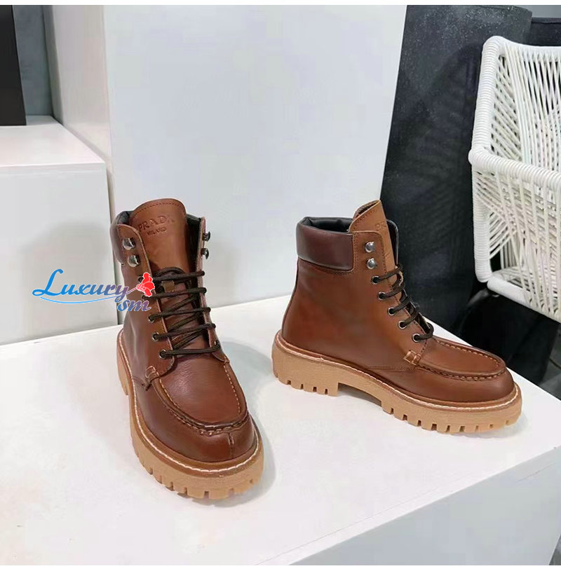 PRADA-1T803N 프라다 가죽 레이스업 부츠 여성용