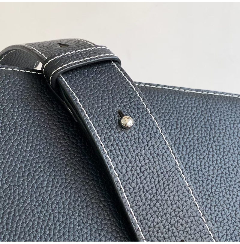 블랙 컬러의 그레인 송아지 가죽 소재로 제작
