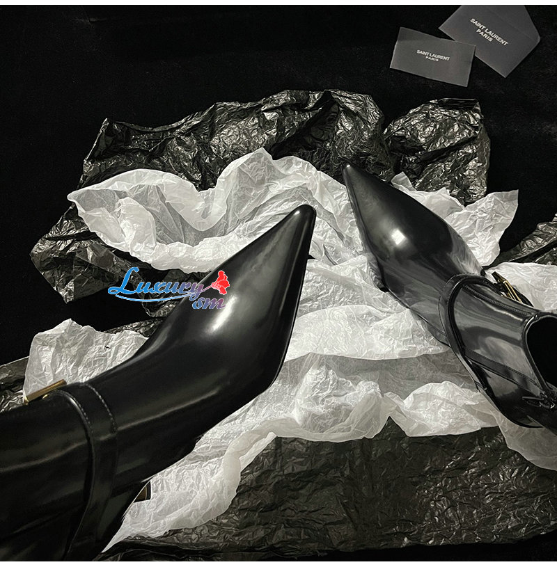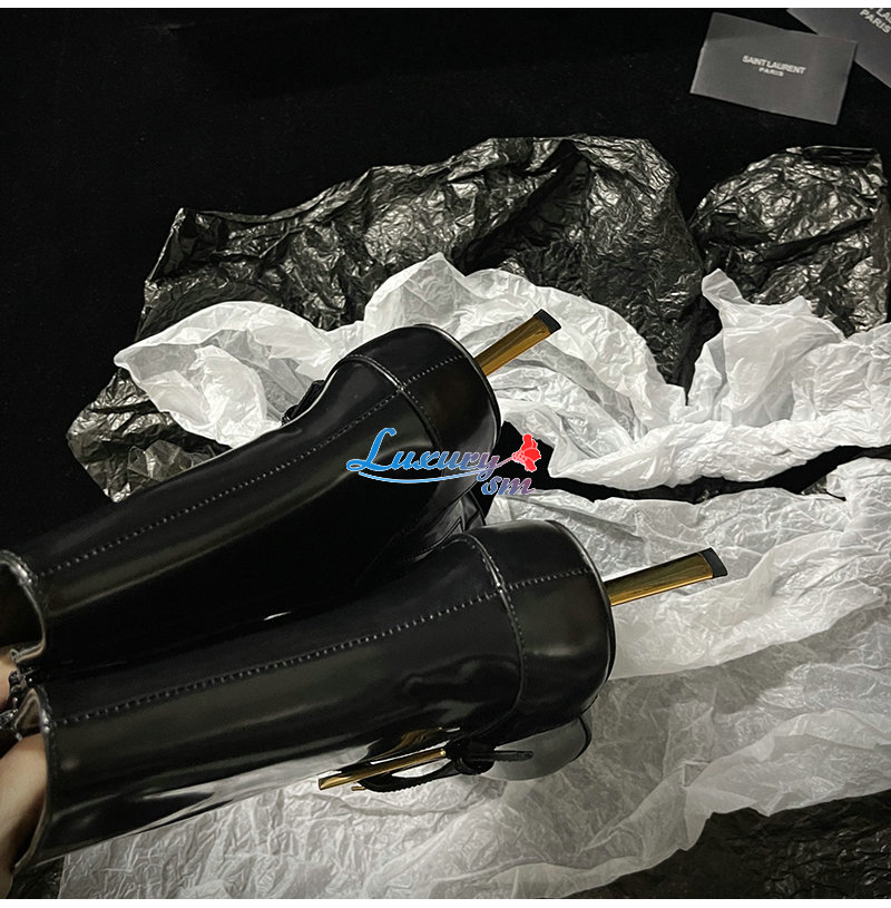 SAINT LAURENT-806645 생 로랑 블랙 글레이즈드 가죽 LEE 부티