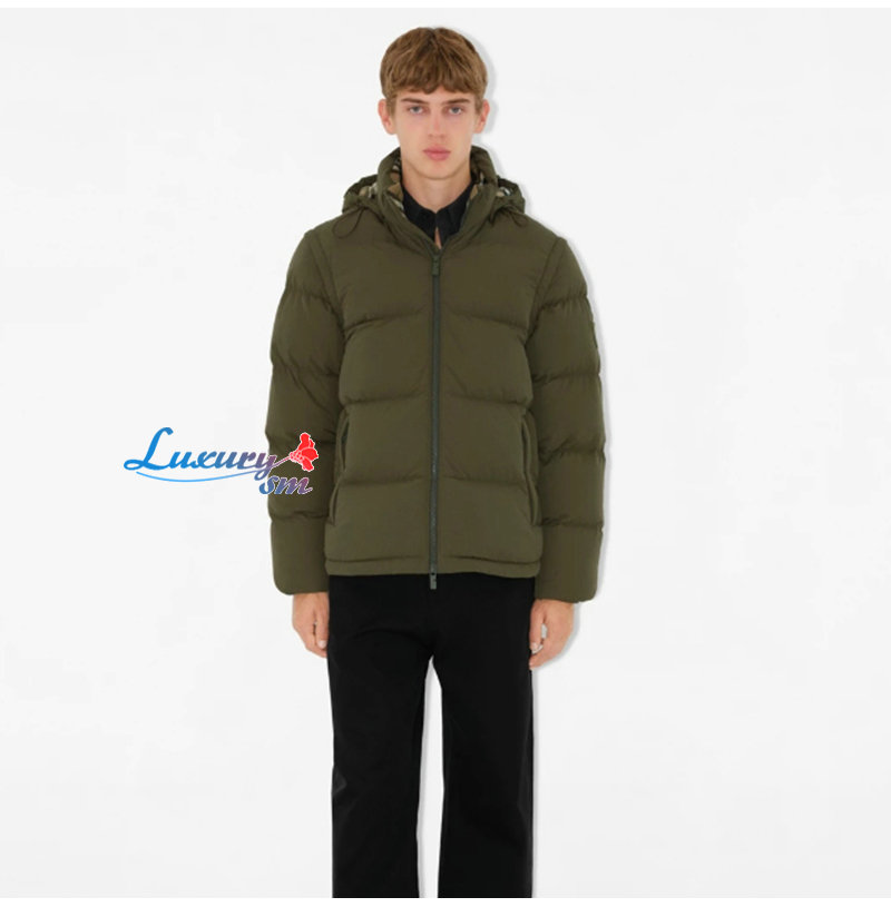 BURBERRY-80999181 버버리 카키 디태처블 슬리브 나일론 비드포드 퍼퍼 재킷 남여공용