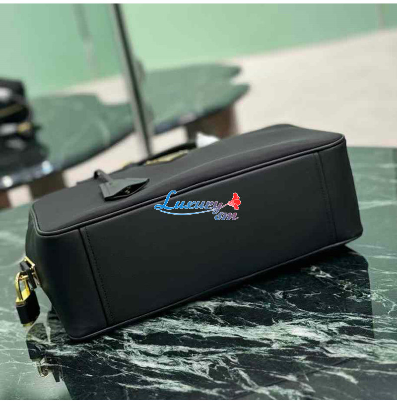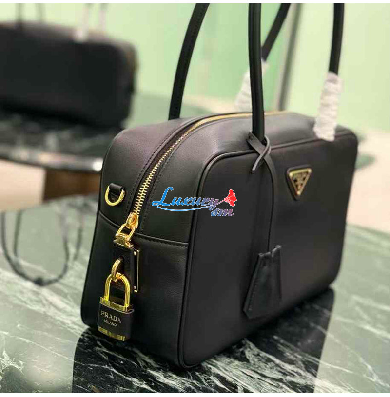 [스페셜오더]PRADA-1BB132 프라다 블랙 미디엄 리나일론 가죽 탑 핸들 백