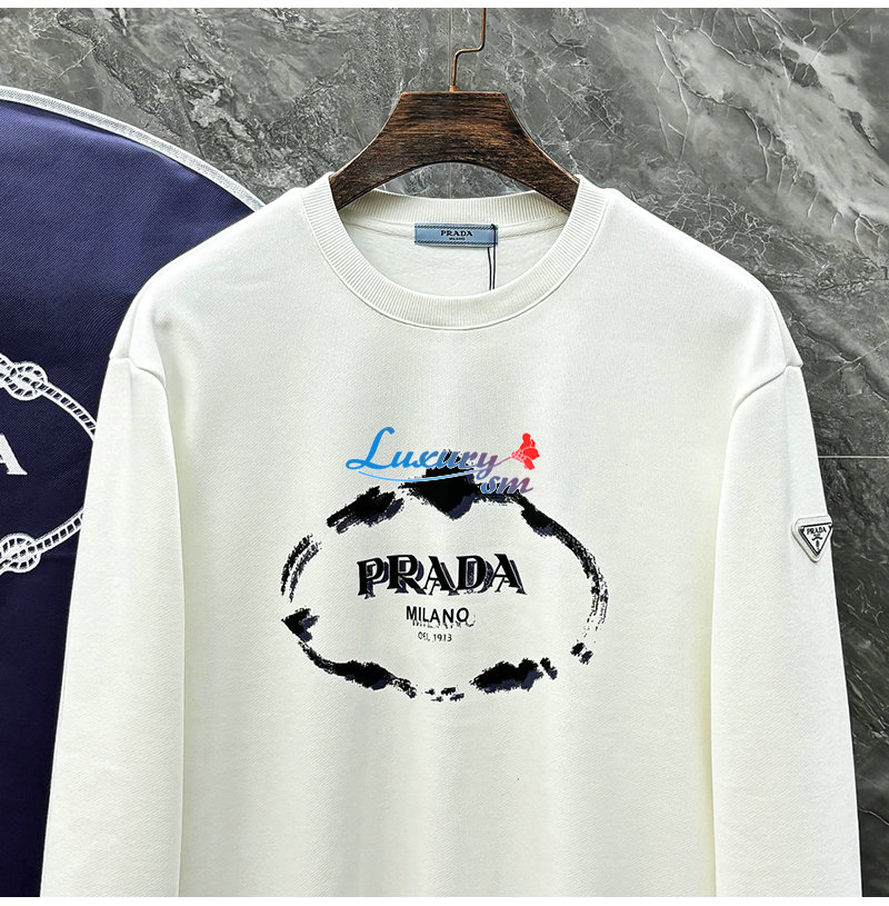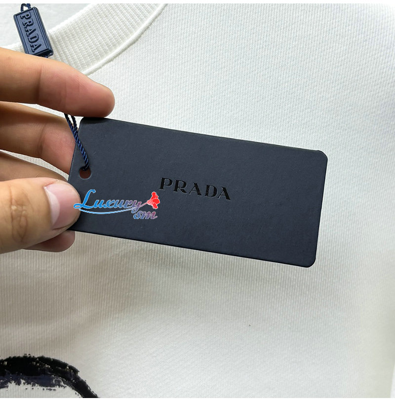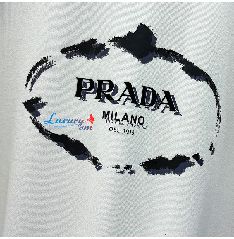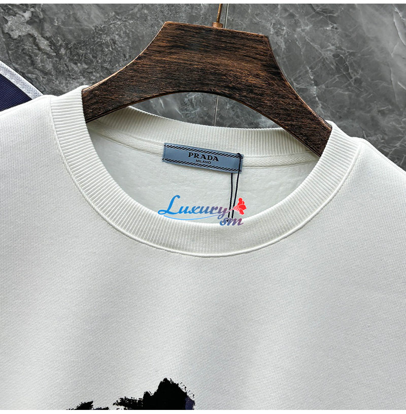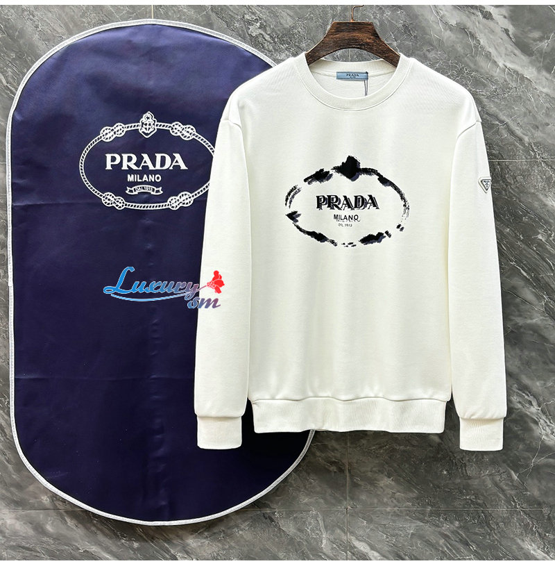 PRADA-12217 프라다 화이트 프린트 장식 기모 스웨트셔츠 남여공용