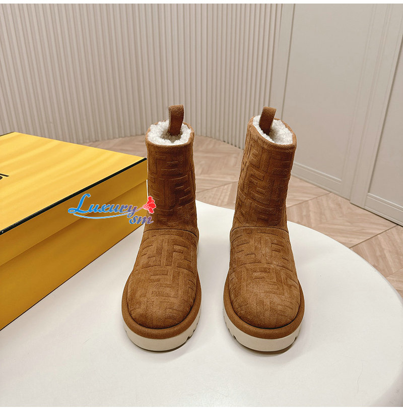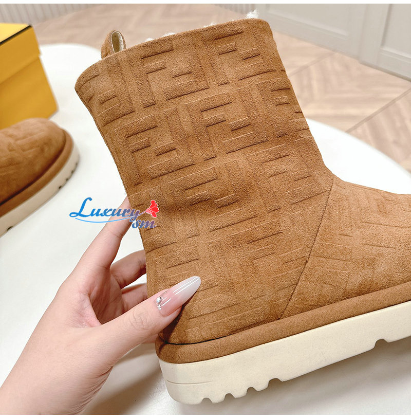 FENDI-8T8606 펜디 브라운 FF 샤모아 로우 부츠 여성용