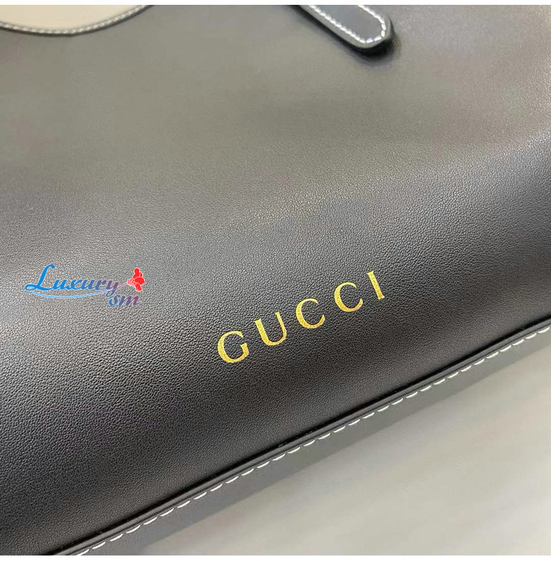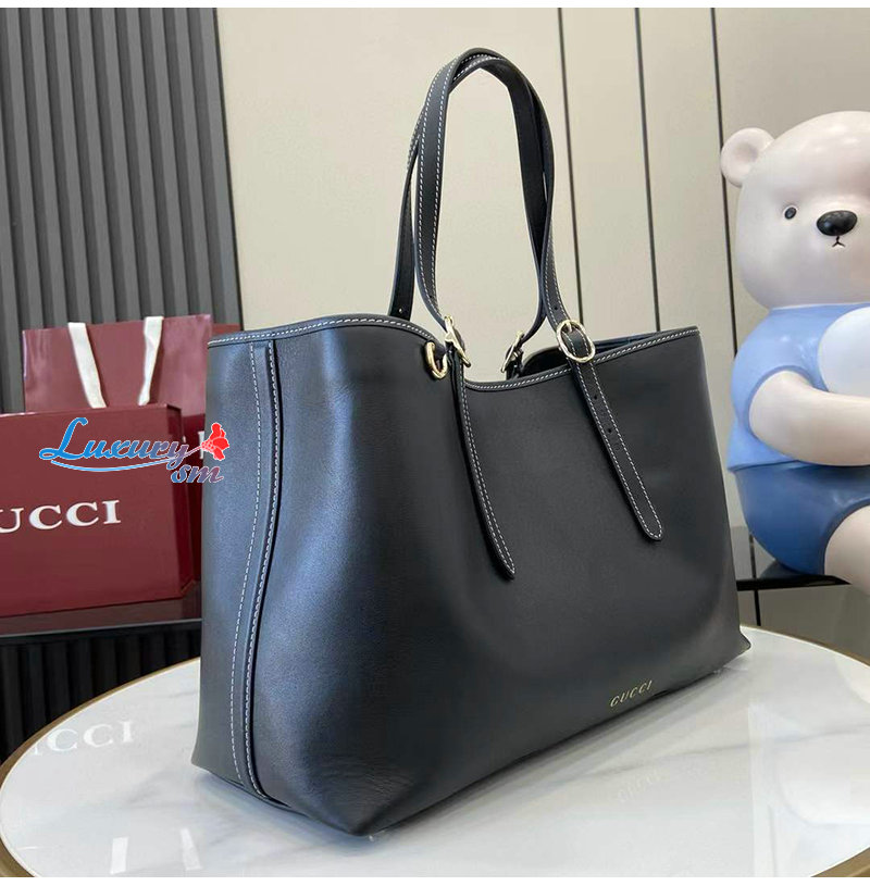 [스페셜오더]GUCCI-815213 1000 구찌 블랙 가죽 GG 엠블럼 미디엄 토트백
