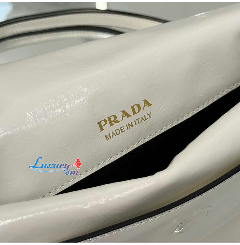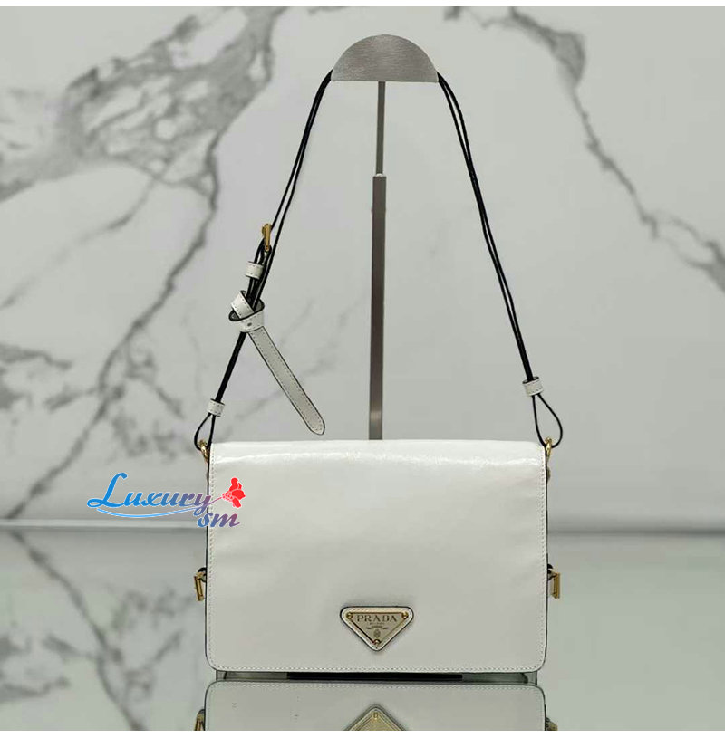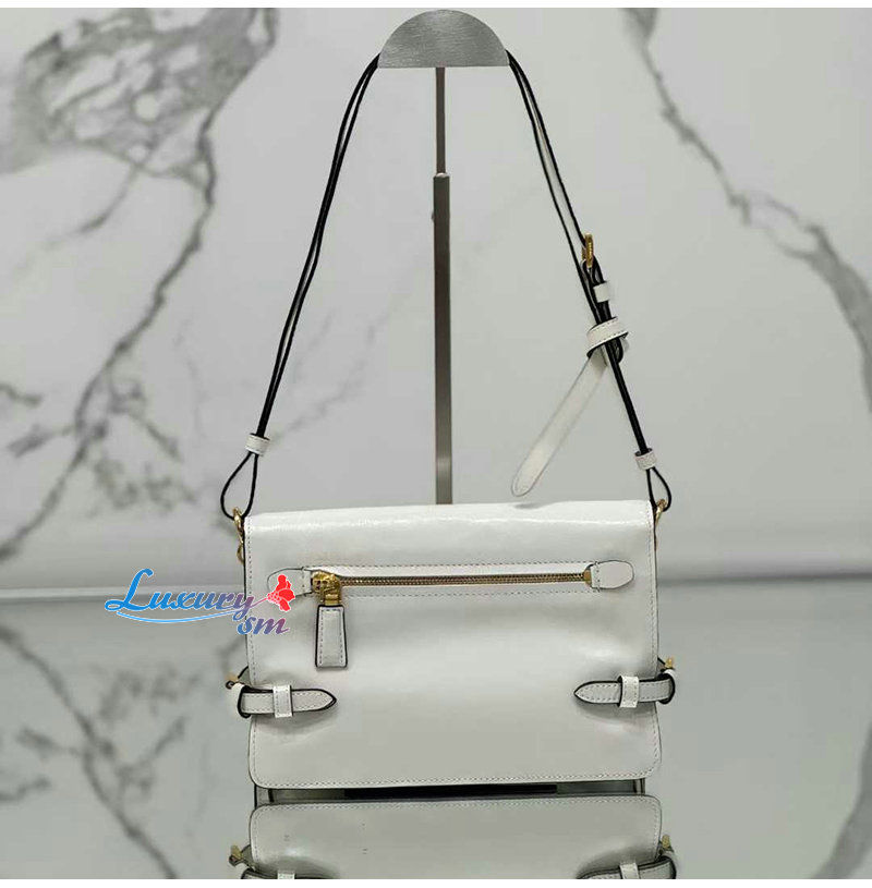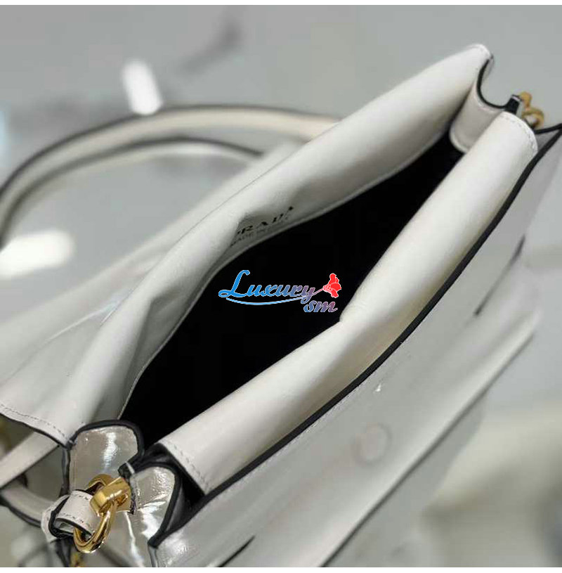 PRADA-1BD082 프라다 화이트 광택 가죽 숄더백