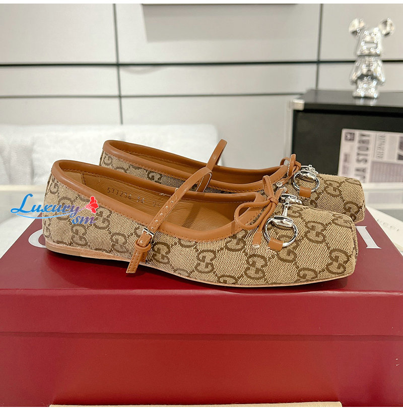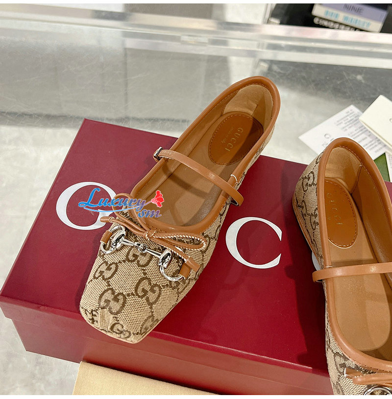 GUCCI-814413 2808 구찌 라이트 브라운 구찌 홀스빗 플랫 슈즈