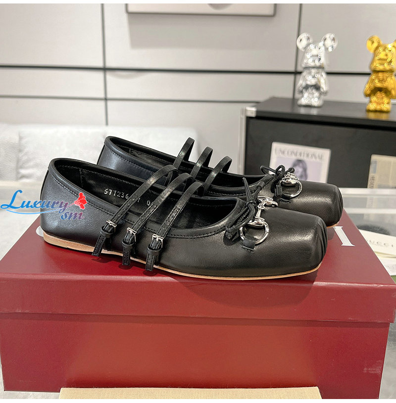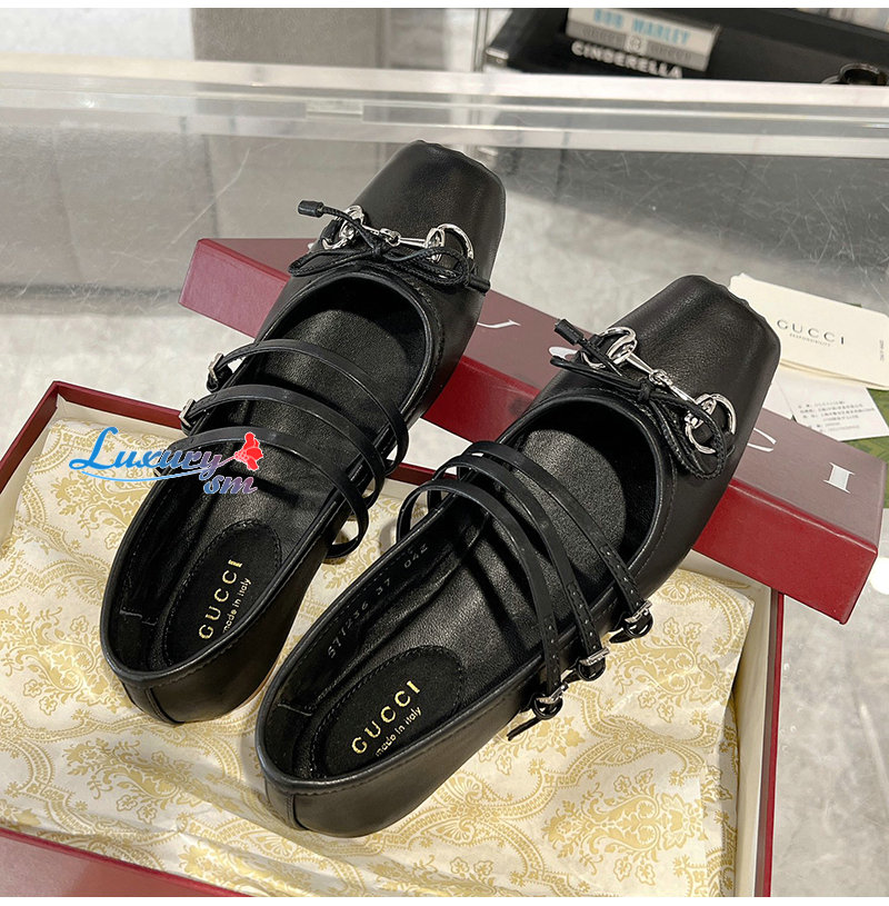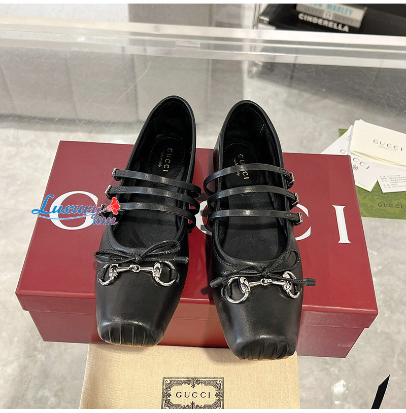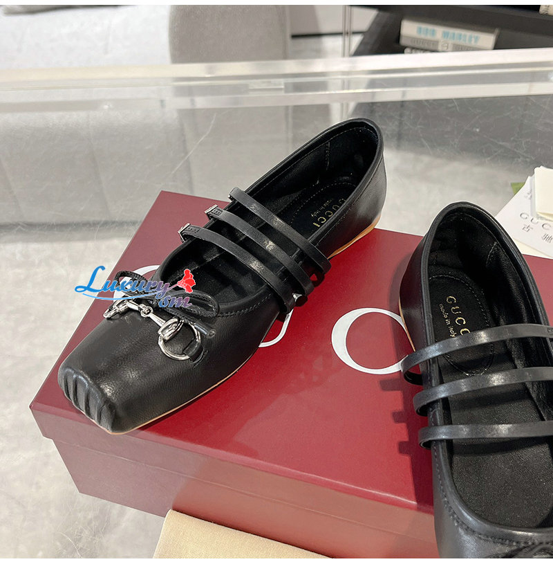 GUCCI-814318 1000 구찌 블랙 가죽 구찌 홀스빗 플랫 슈즈