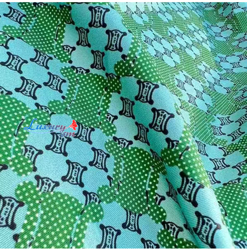 CELINE-02206 셀린느 그린 트리옹프 실크 스카프
