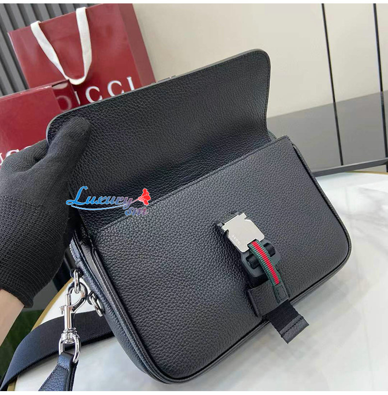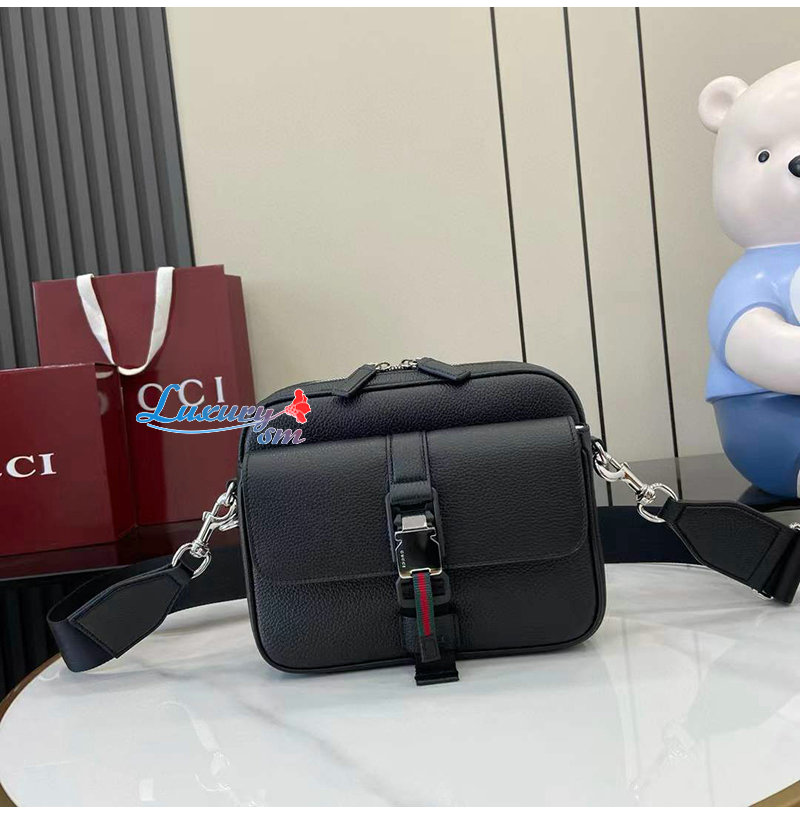[스페셜오더]GUCCI-816751 1042 구찌 블랙 가죽 웹(Web) 디테일 스몰 크로스백