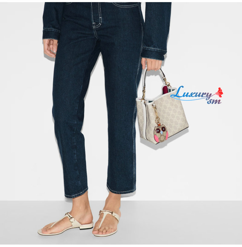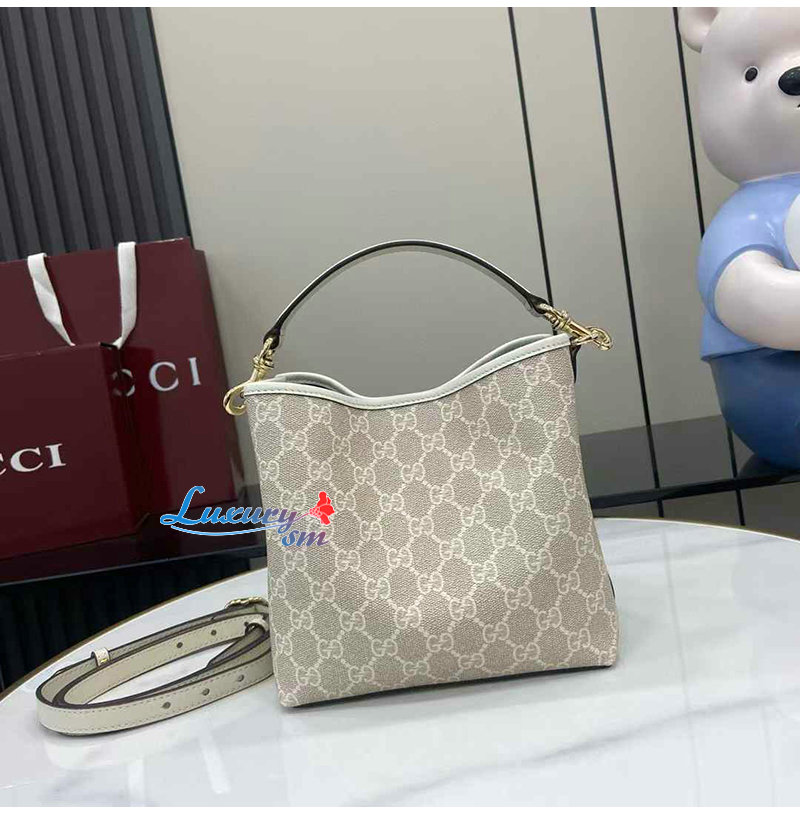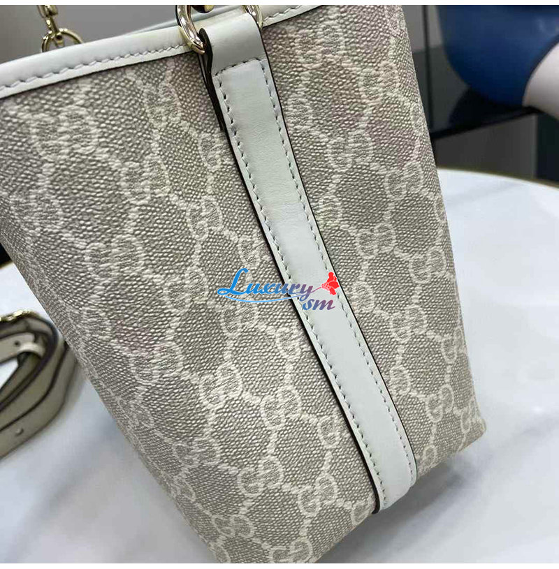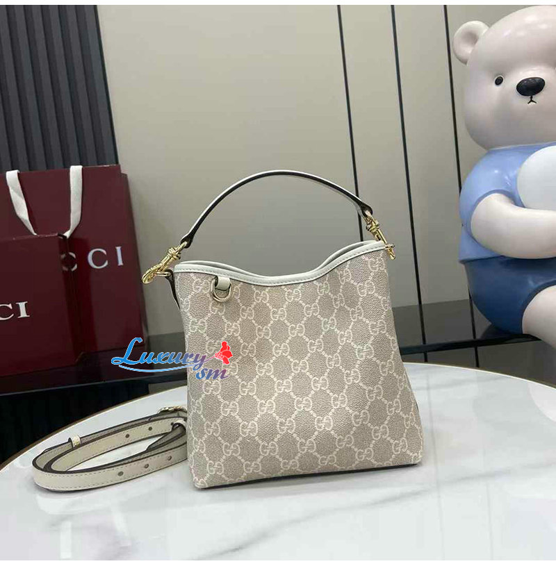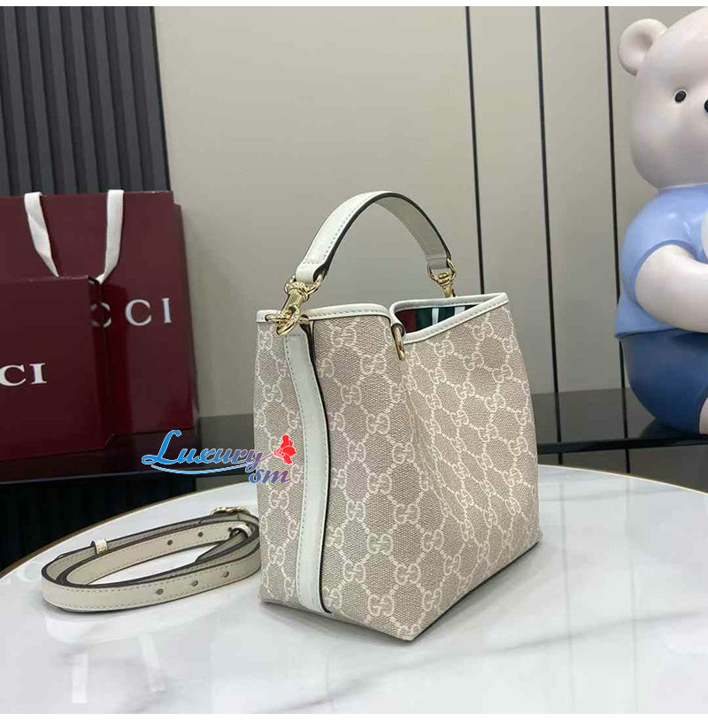 [스페셜오더]GUCCI-815118 9641 구찌 베이지/화이트 GG 엠블럼 미니 버킷백