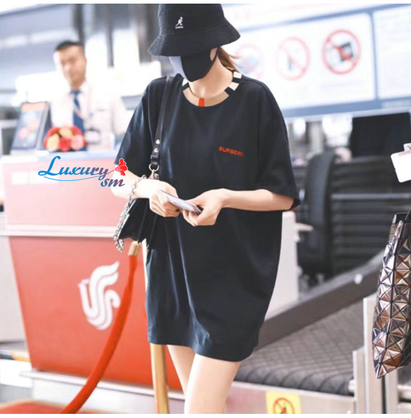 BURBERRY-03201 버버리 블랙 체크 디테일 티셔츠 남여공용