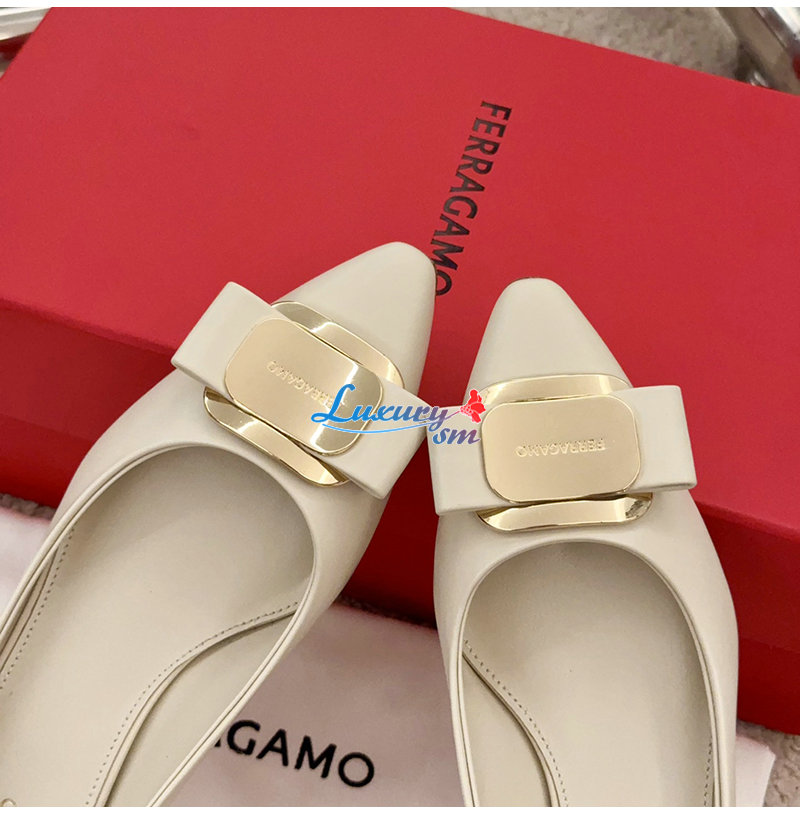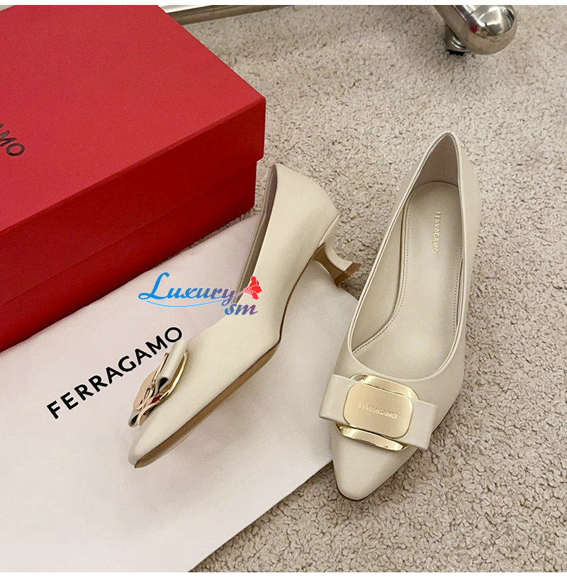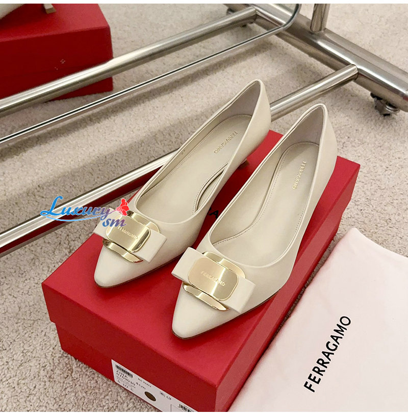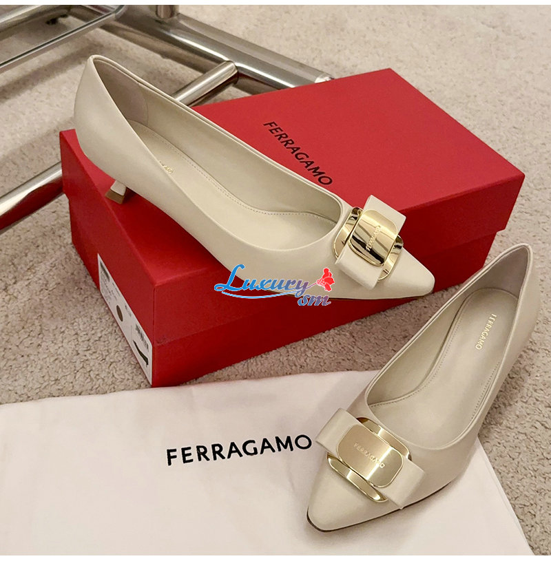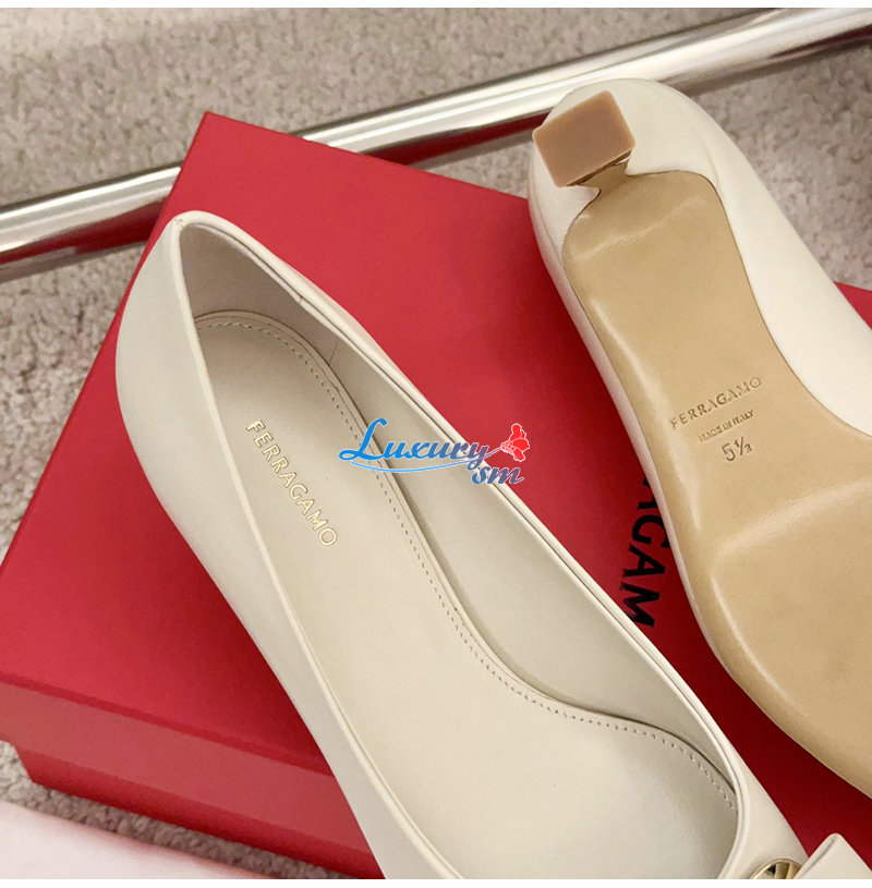 Ferragamo-01H450 페라가모 화이트 뉴 바라 플레이트 키튼 힐 펌프스